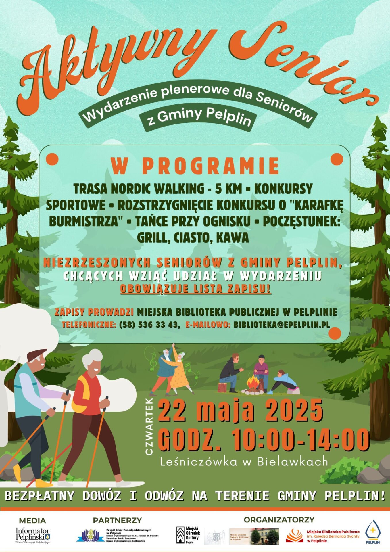 Spotkajmy się 22 maja 2025 r. o godz. 10:00 w Leśniczówce w Bielawkach. Zapewniamy bezpłatny dowóz i odwóz na terenie Gminy Pelplin.
