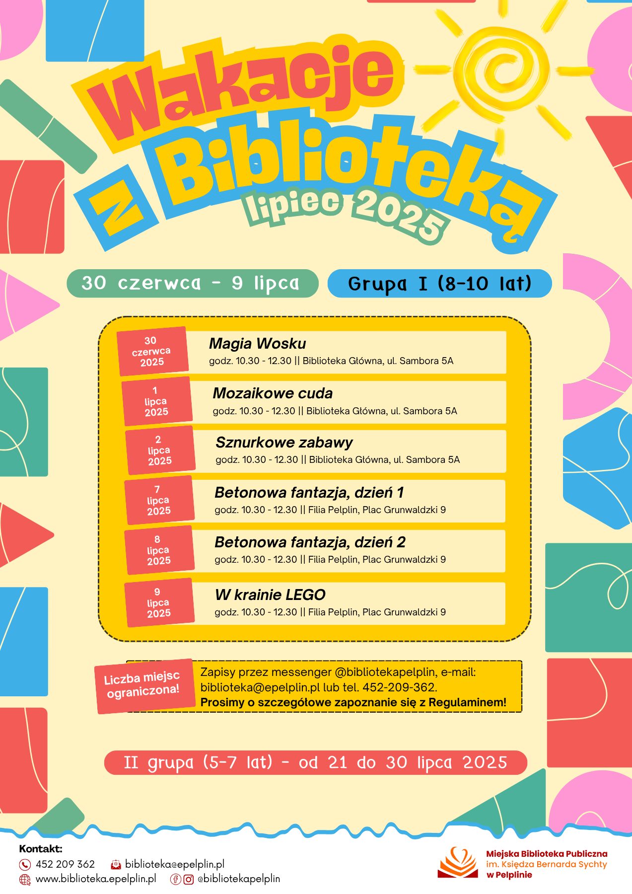 I grupa (8-10 lat) – zajęcia od 30 czerwca do 9 lipca (Zapisy obowiązują od dzisiaj, poniżej harmonogram)