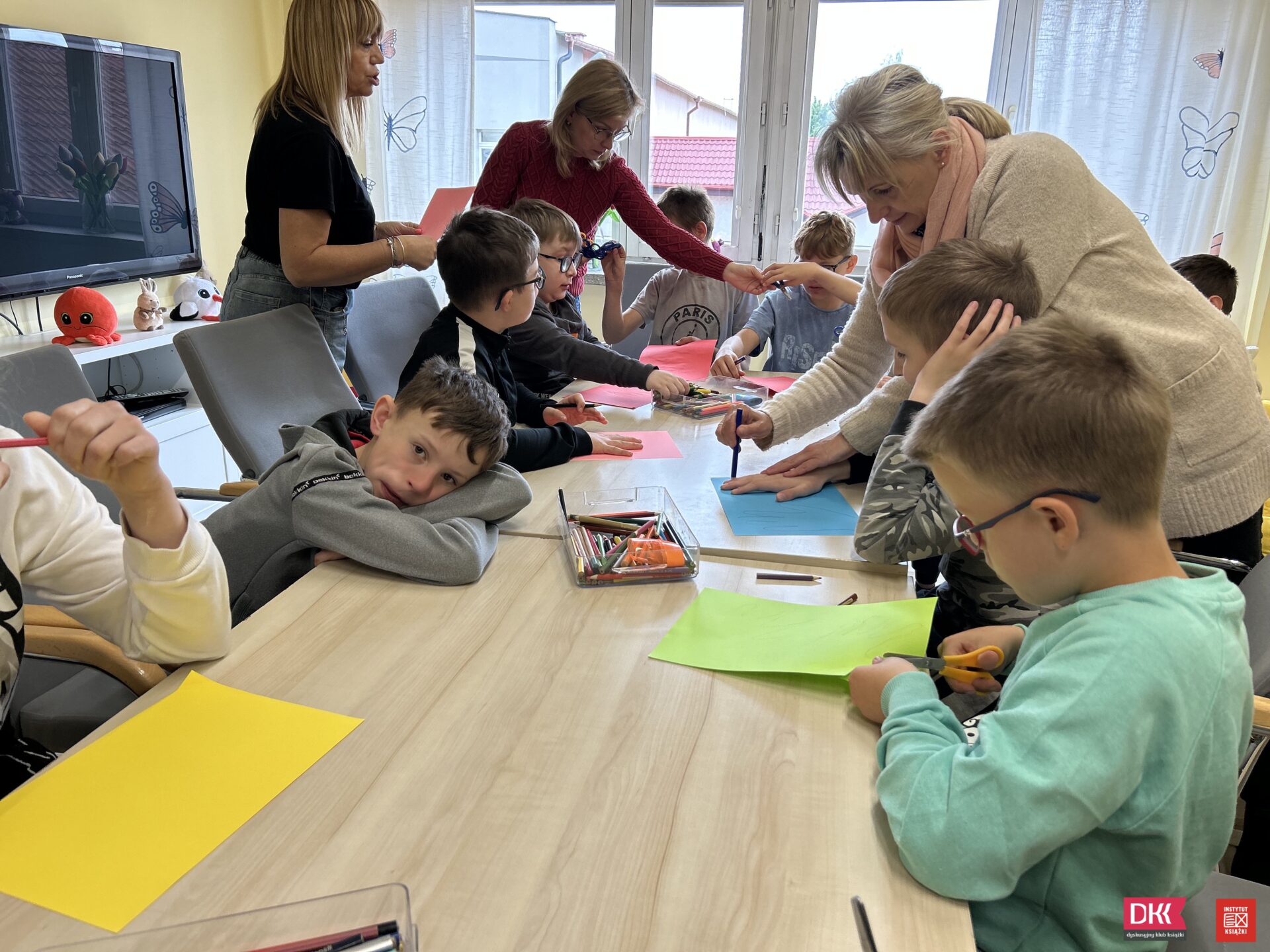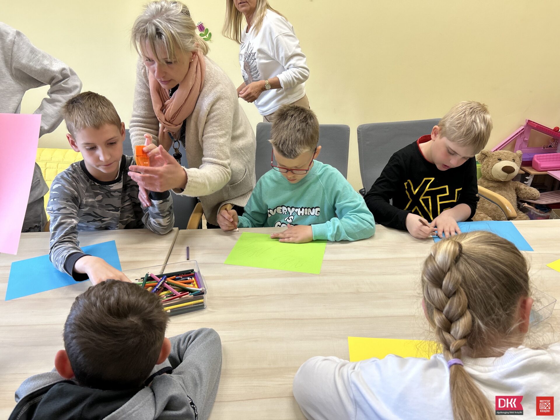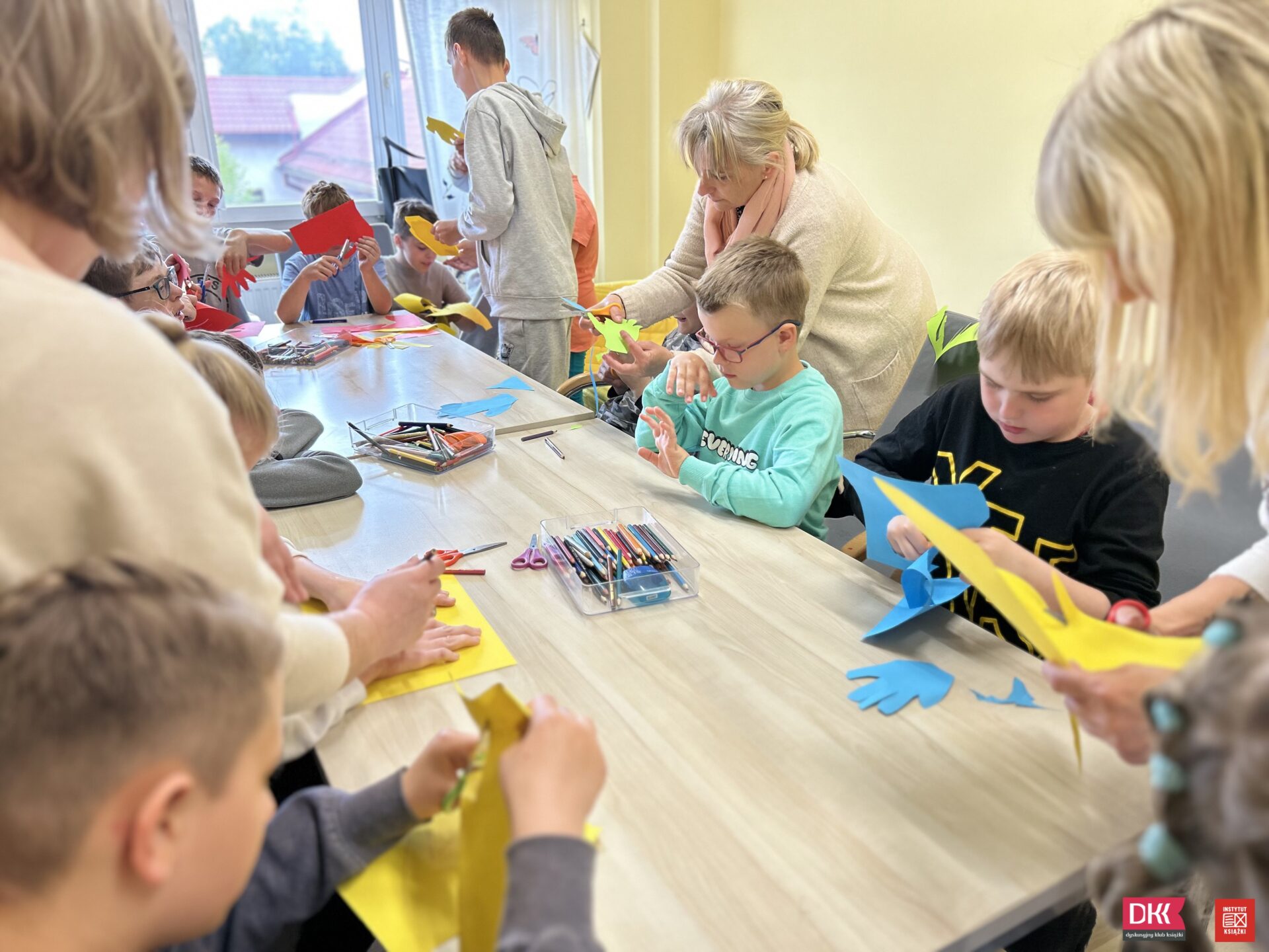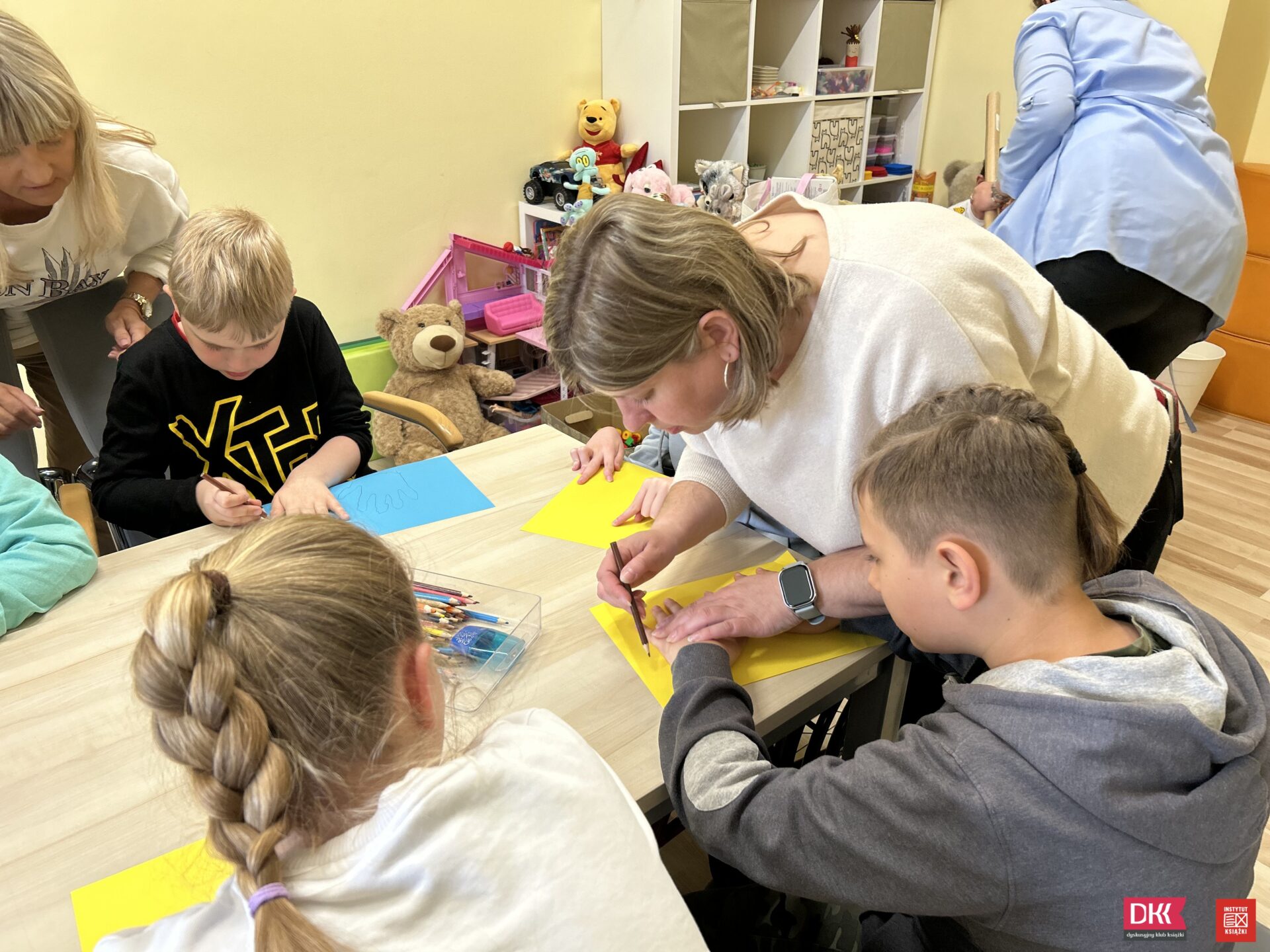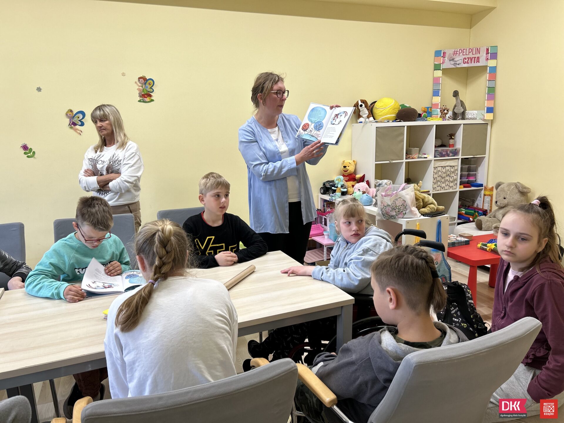 Na zakończenie spotkania uczniowie Sosw w Pelplinie im. Św. Józefa wykonali plakat inspirowany treścią książki. Znalazło się na nim wielkie drzewo wypełnione odbiciami naszych rąk.