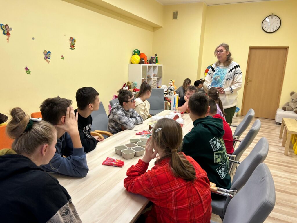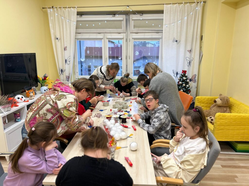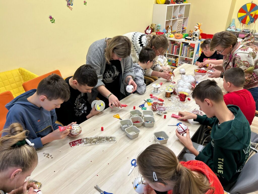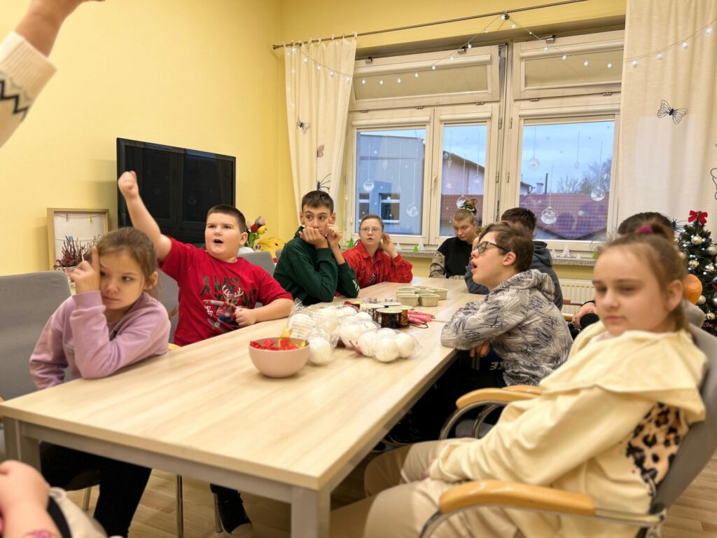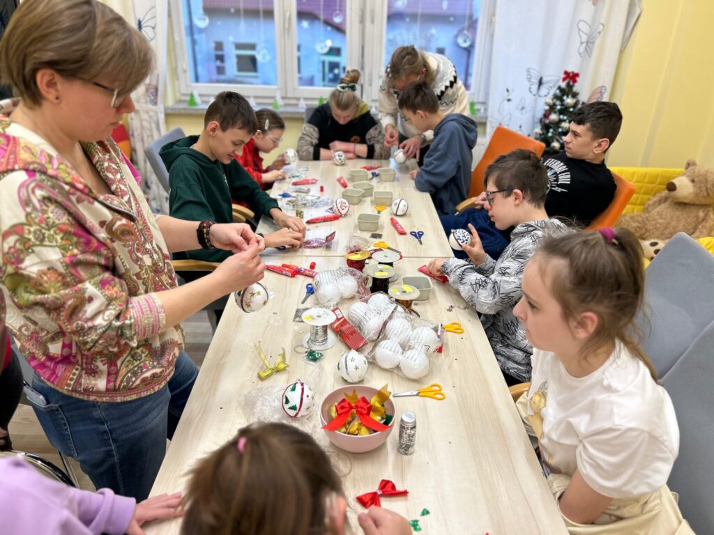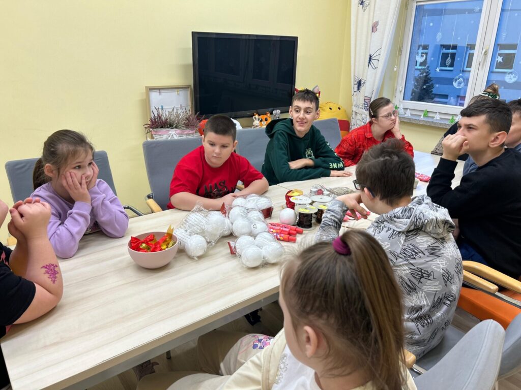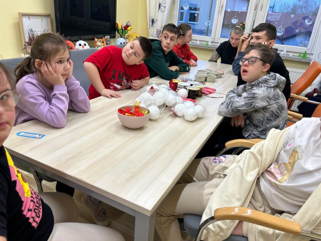 Na zakończenie spotkania nasi klubowicze przygotowywali styropianowe bombki. W ruch poszły cekiny i kolorowe ozdoby, dzięki czemu powstały piękne, błyszczące dekoracje, które wprowadziły świąteczny nastrój.