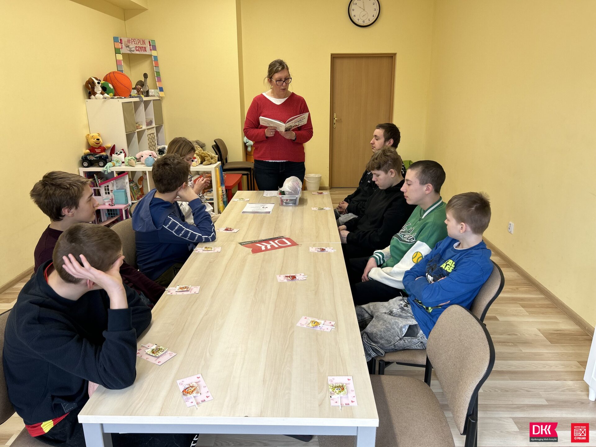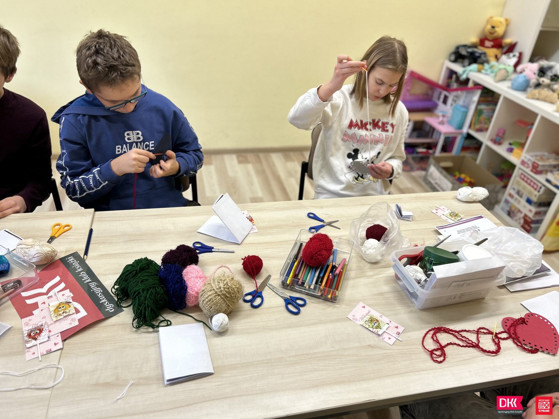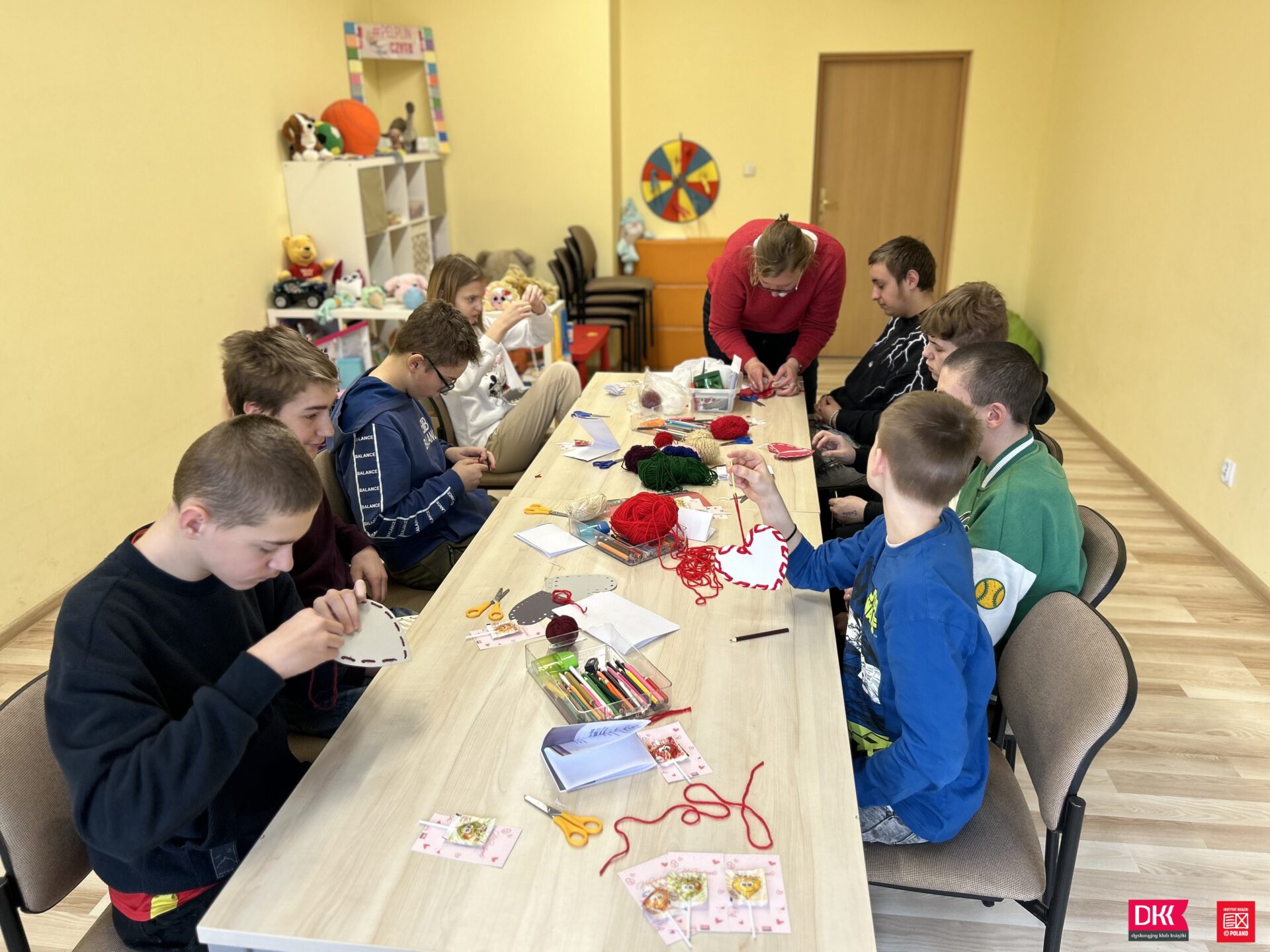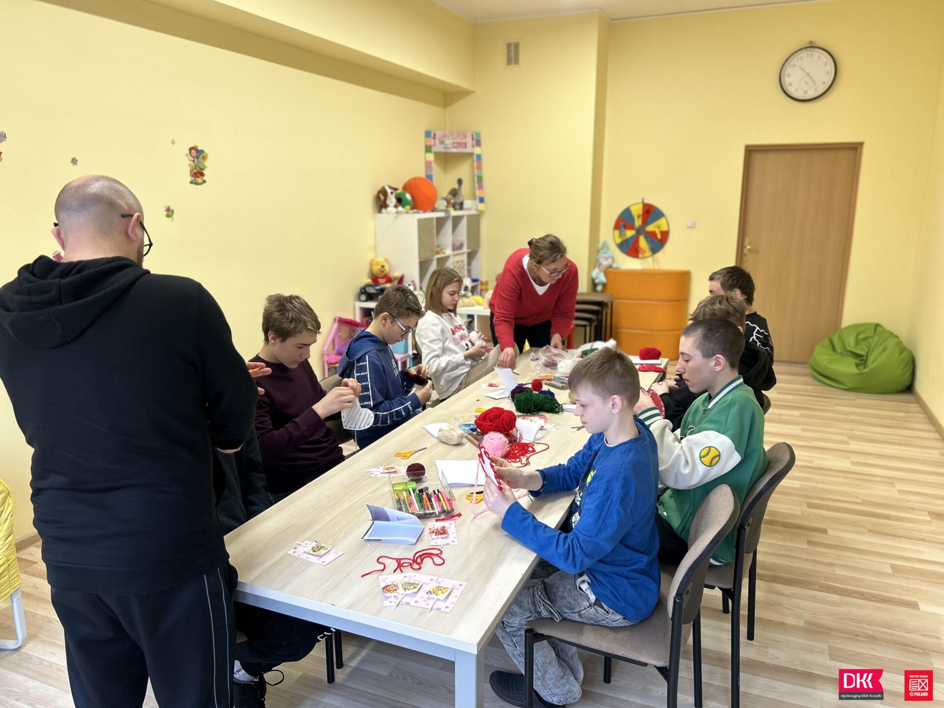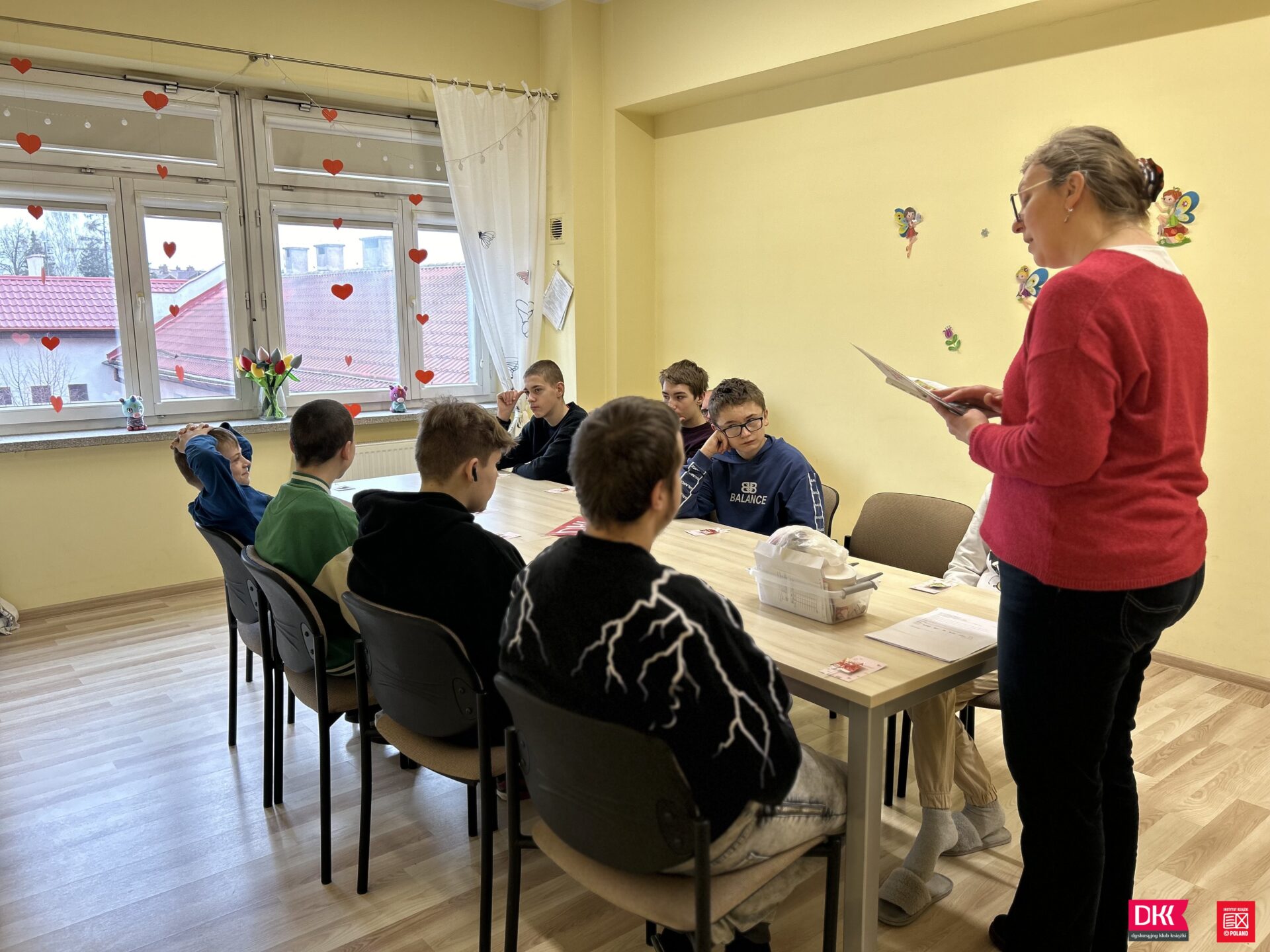Po dyskusji przeszliśmy do drugiej części spotkania. Uczniowie Sosw w Pelplinie im. Św. Józefa wzięli do rąk papier, kolorowe sznurki oraz nożyczki, by stworzyć walentynkowe zawieszki dla swoich bliskich.