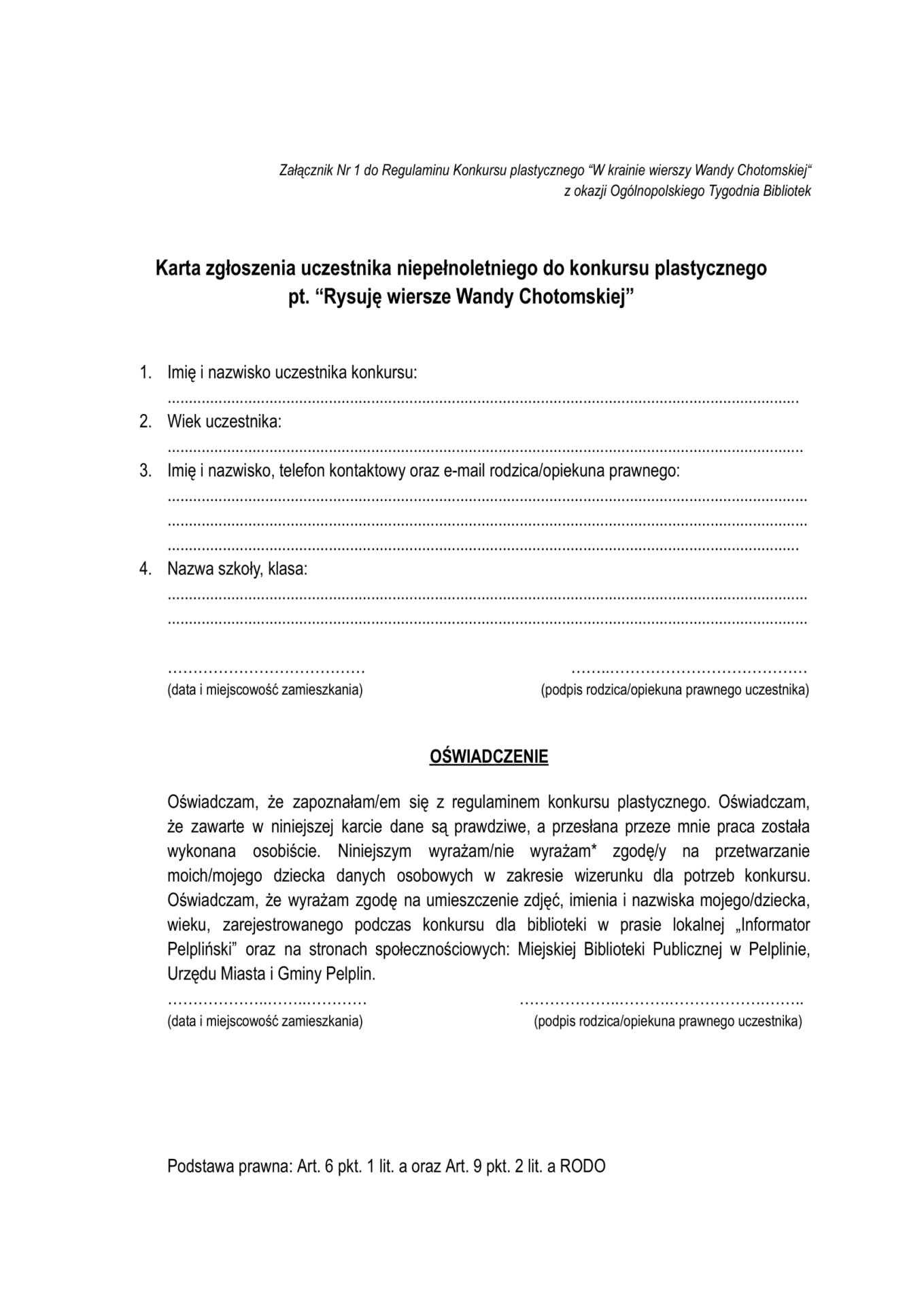 REGULAMIN + KARTA ZGŁOSZENIA