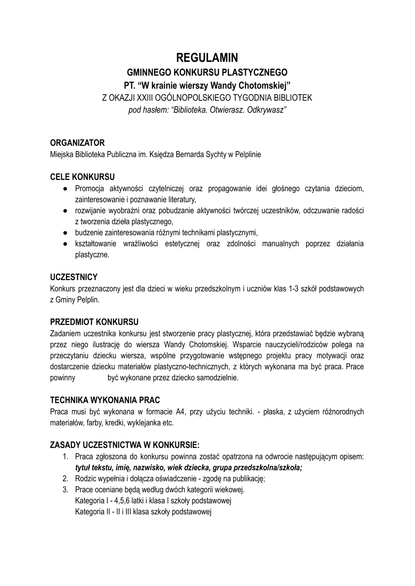Zapraszamy do udziału w Gminnym Konkursie Plastycznym