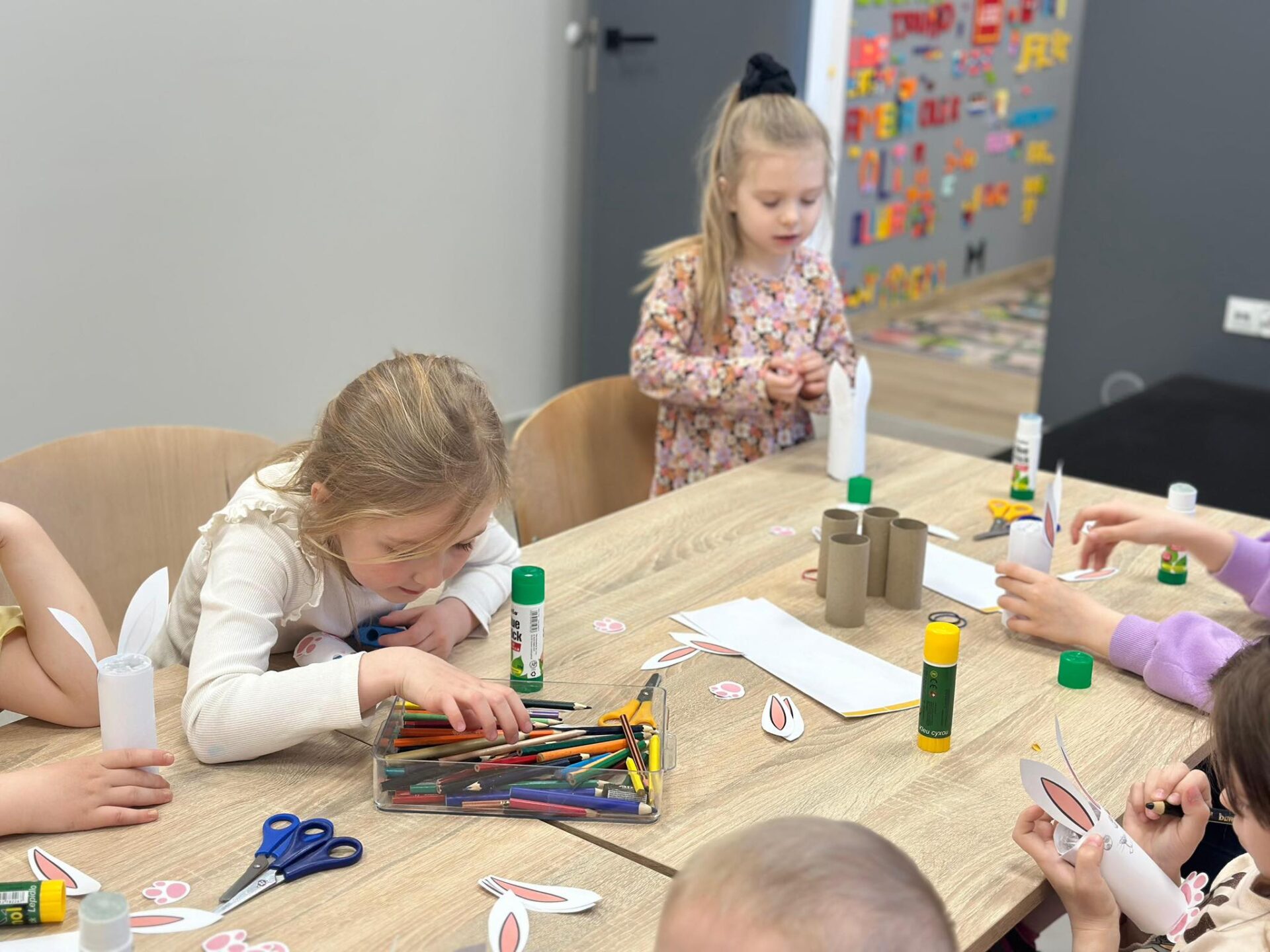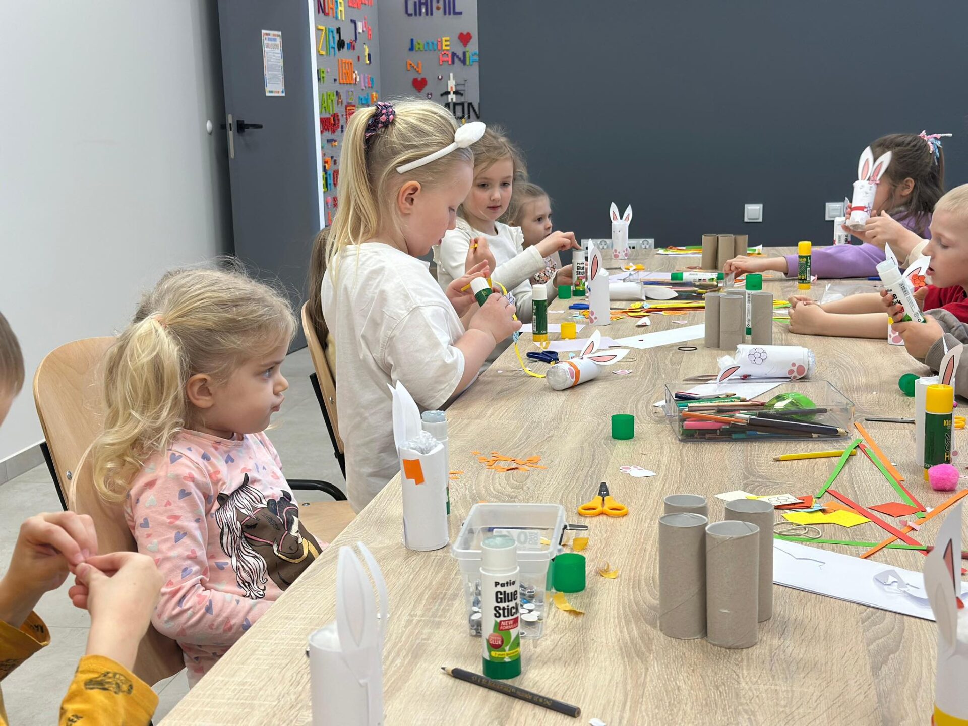 Na dzisiejszych zajęciach w Klubie Małego Artysty stworzyliśmy zające z rolek papieru!