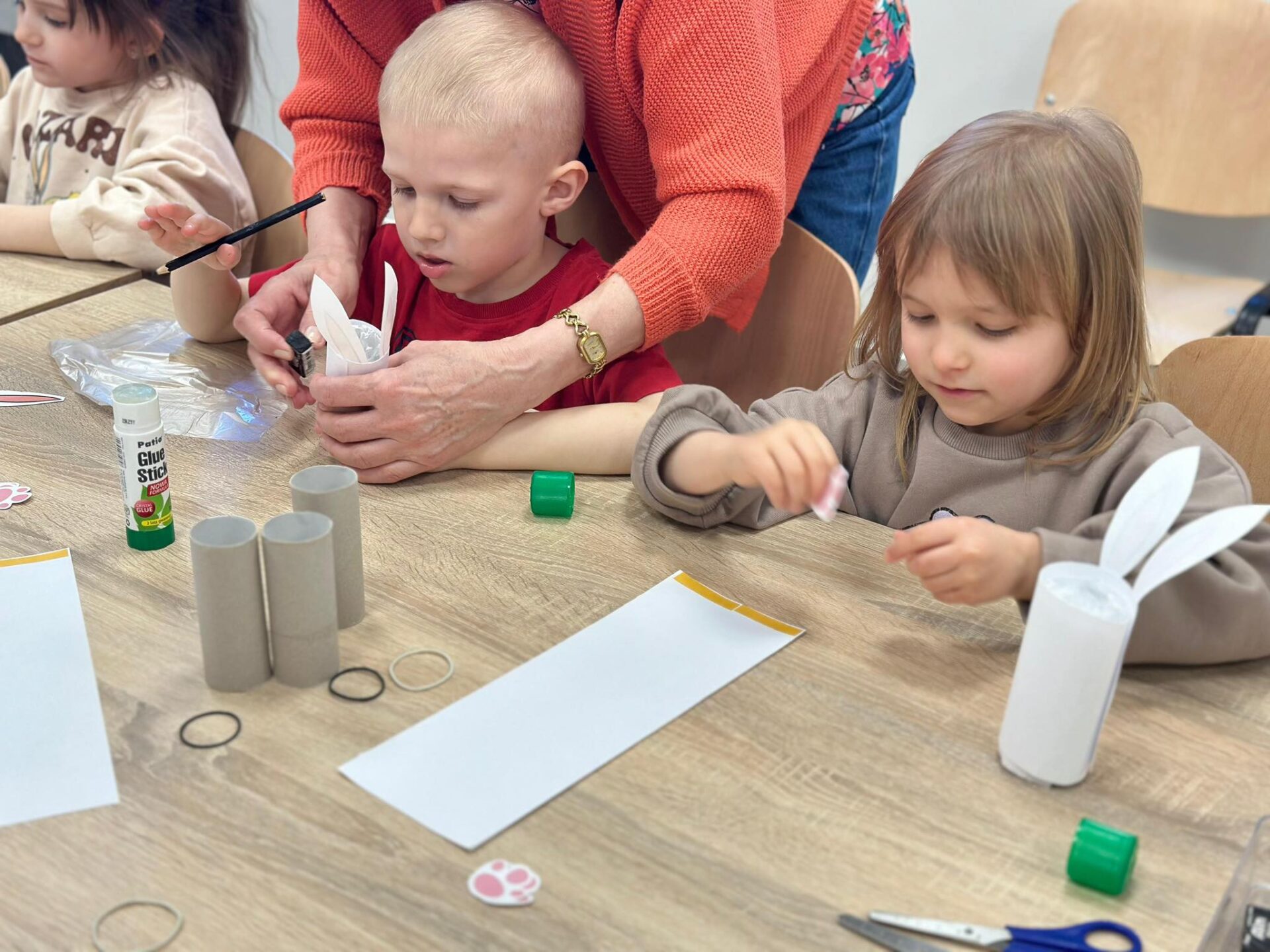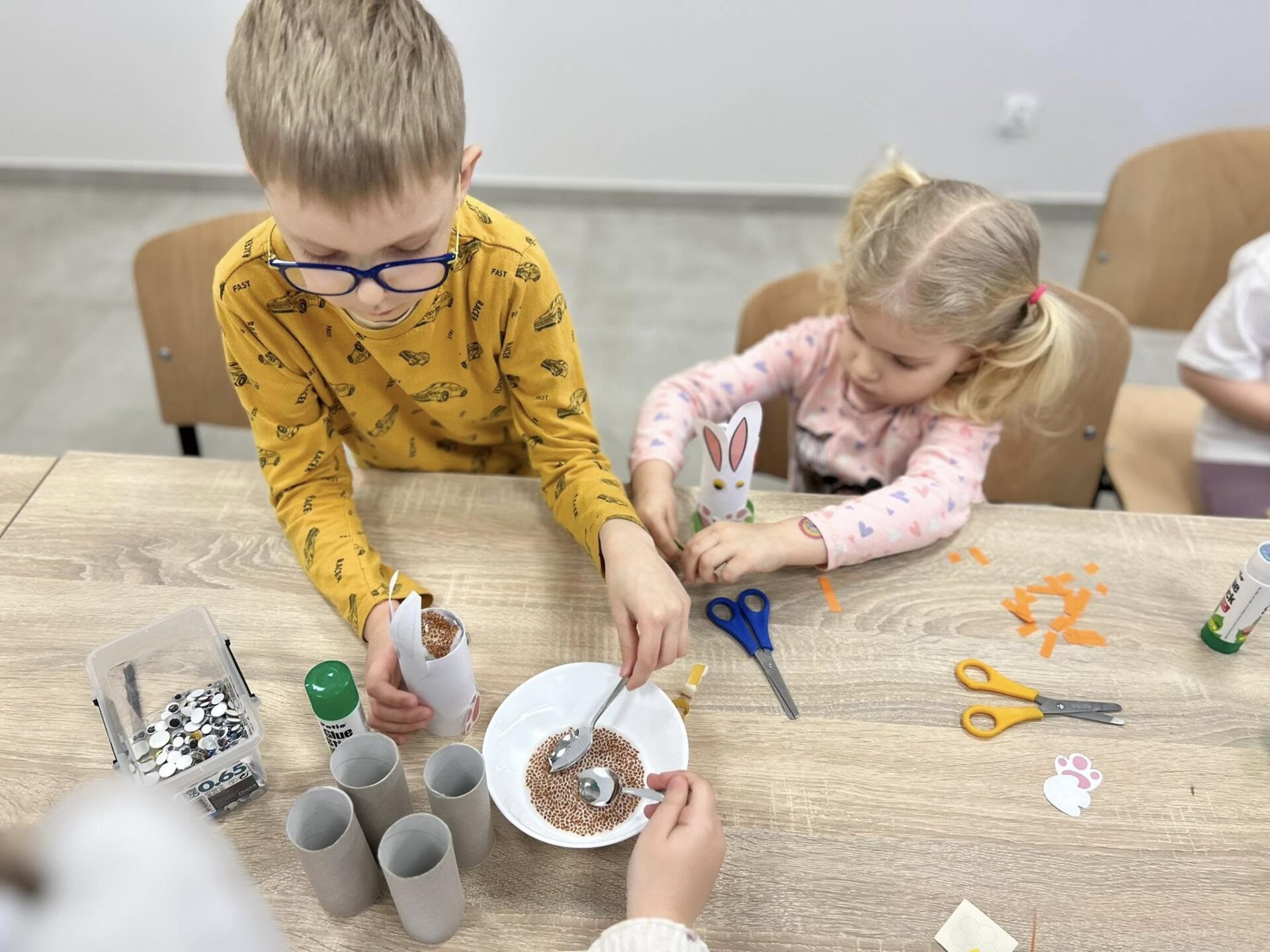 Dzieci miały mnóstwo radości, tworząc swoje wiosenne zajączki.