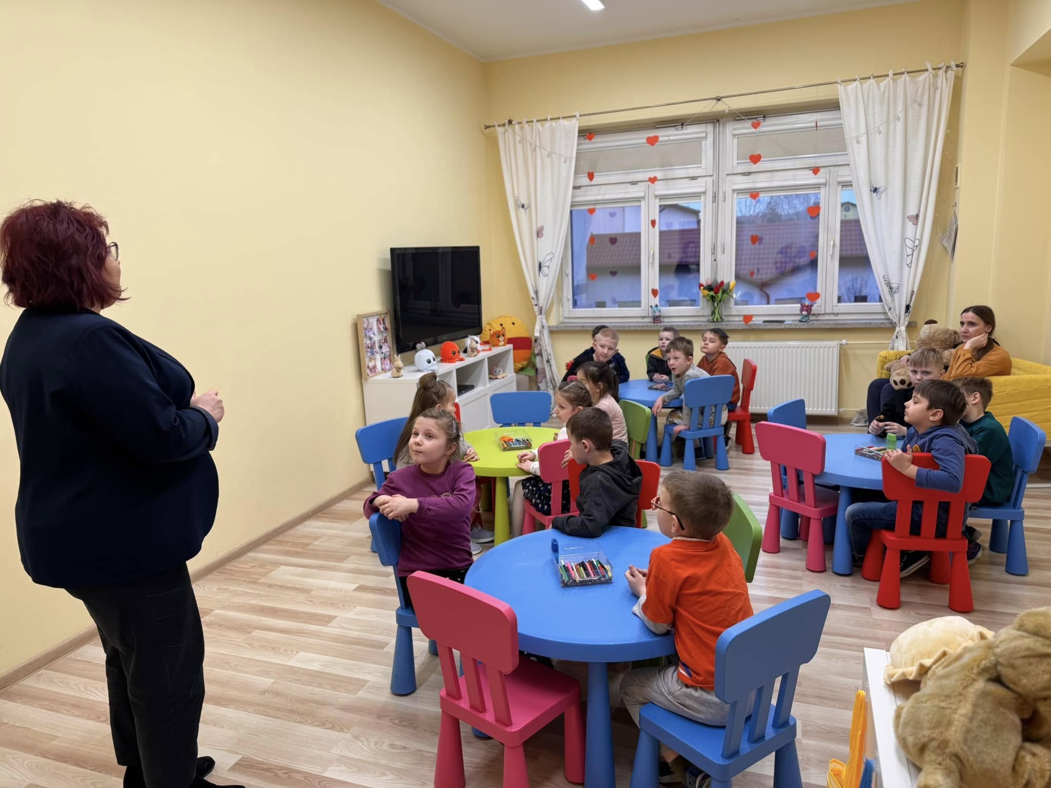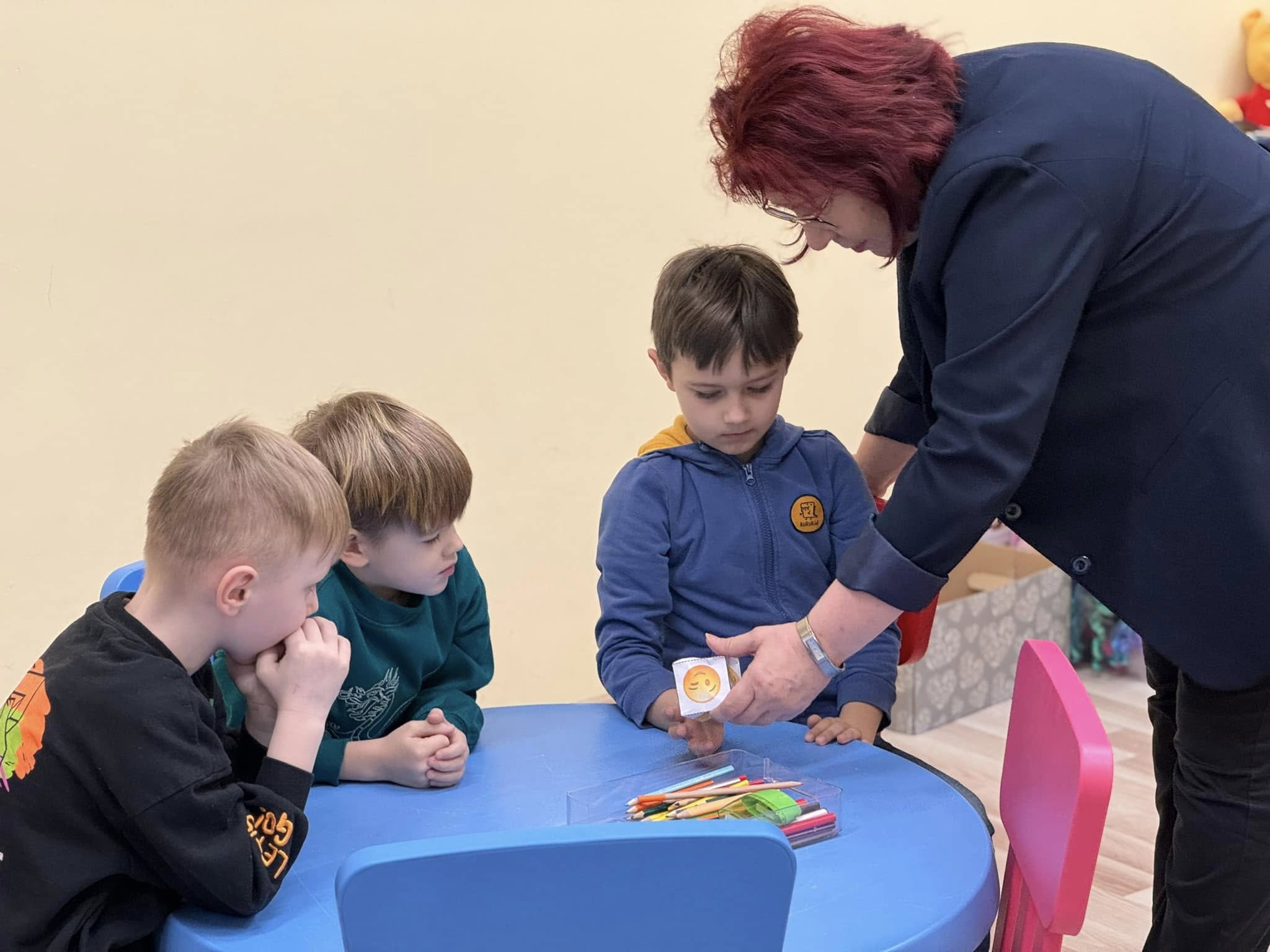 Następnie, przedszkolaki udały się do sali Bajkolandia, gdzie miały okazję wysłuchać książki o emocjach, która pomogła im lepiej zrozumieć swoje uczucia i wyrażać je w różnych sytuacjach.