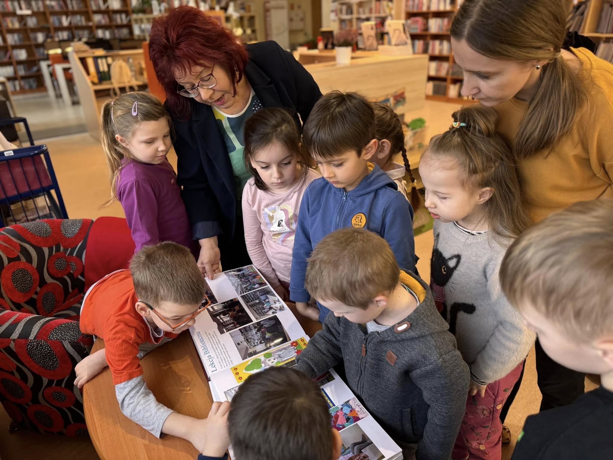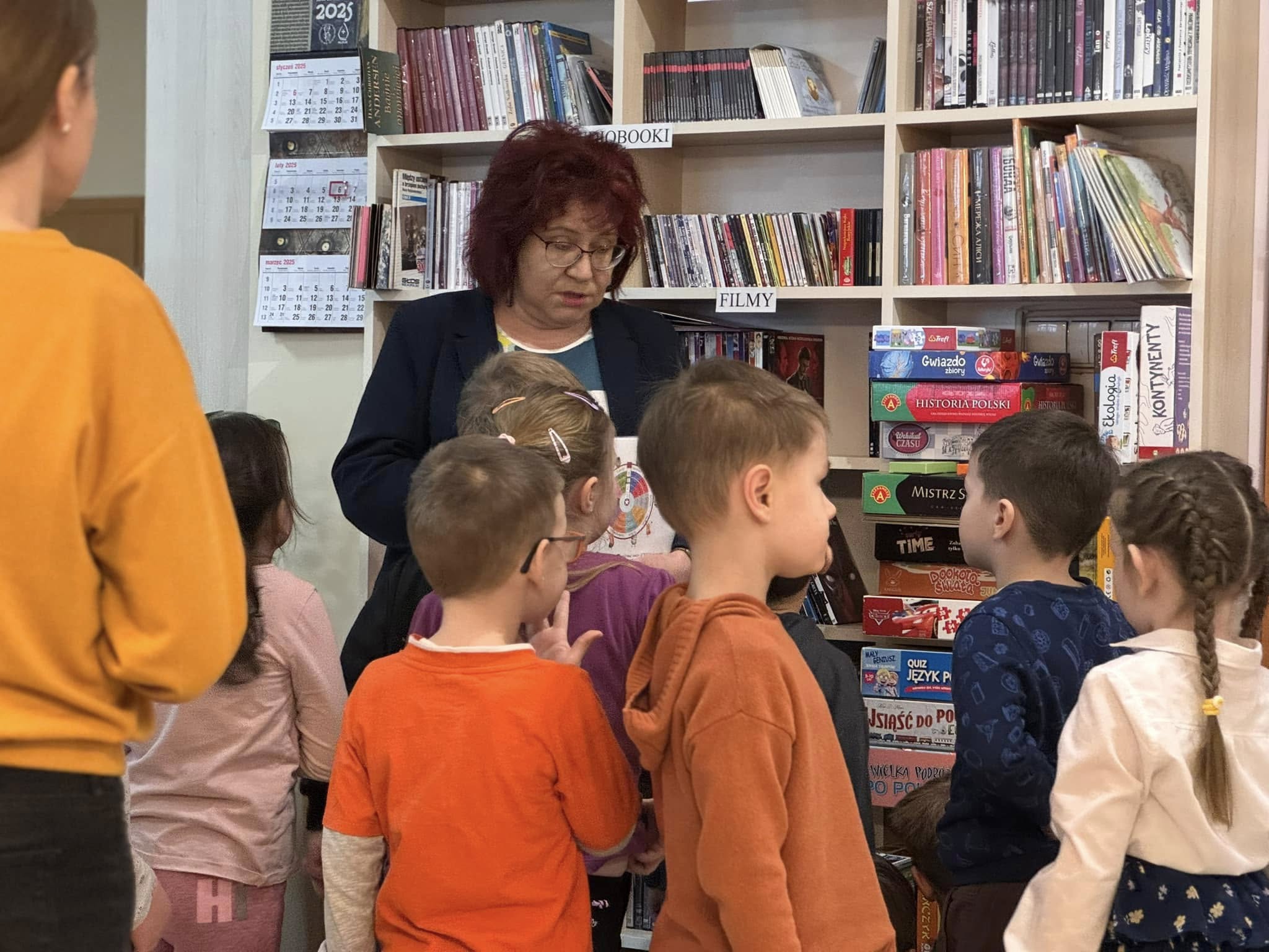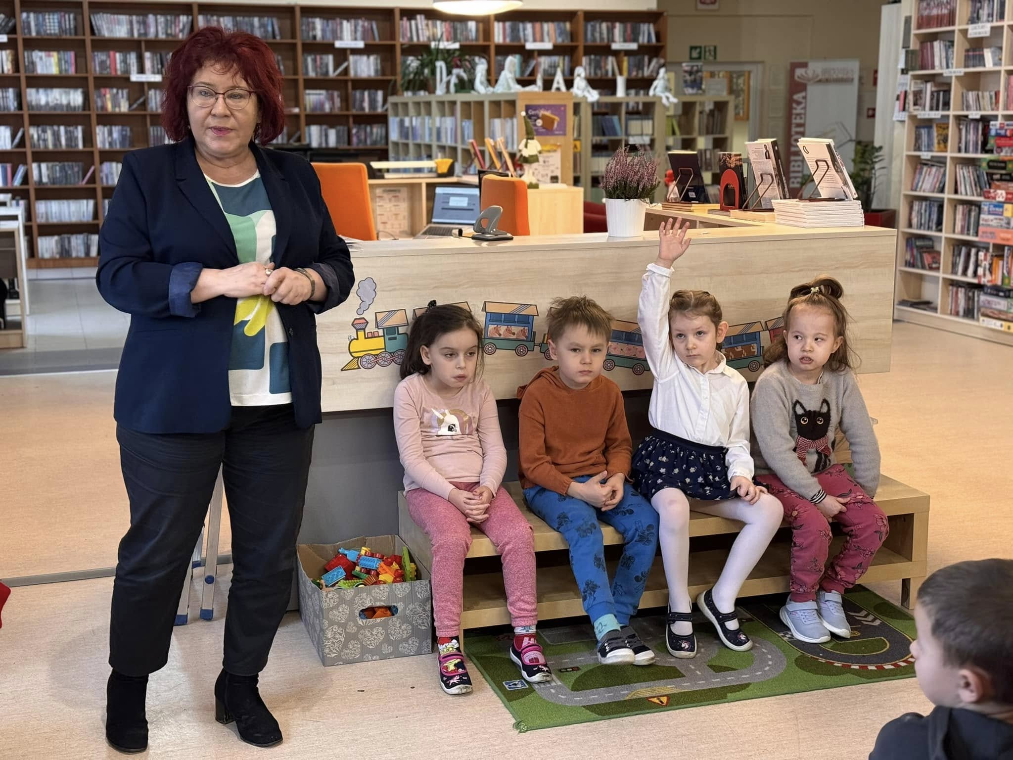 Dzisiaj odwiedziła nas grupa Dinusie z Przedszkole Jedyneczka Pelplin wraz z Paniami. Pani dyrektor Dorota Sakowska oprowadziła naszych małych gości po bibliotece opowiadając o świecie książek
