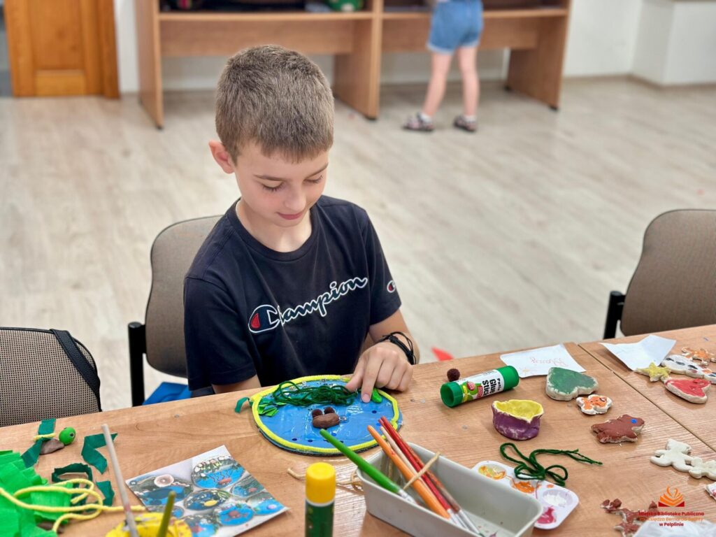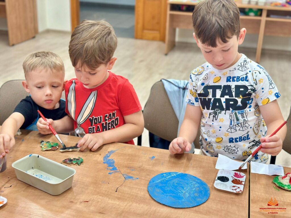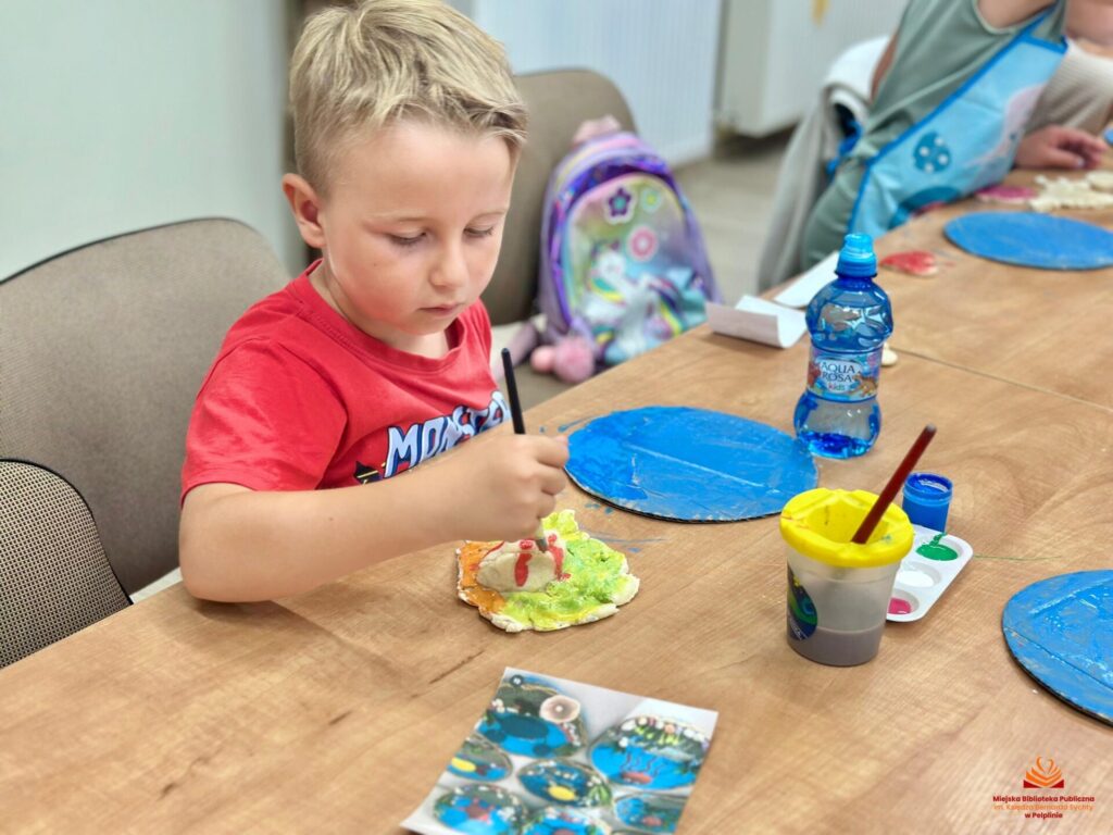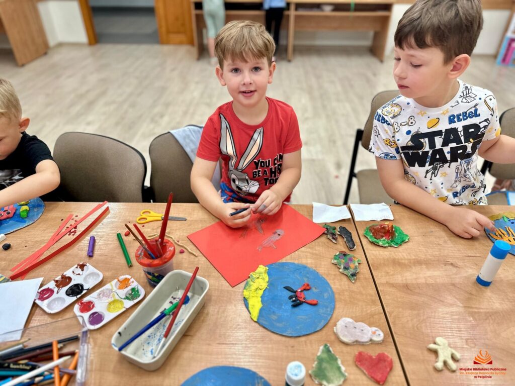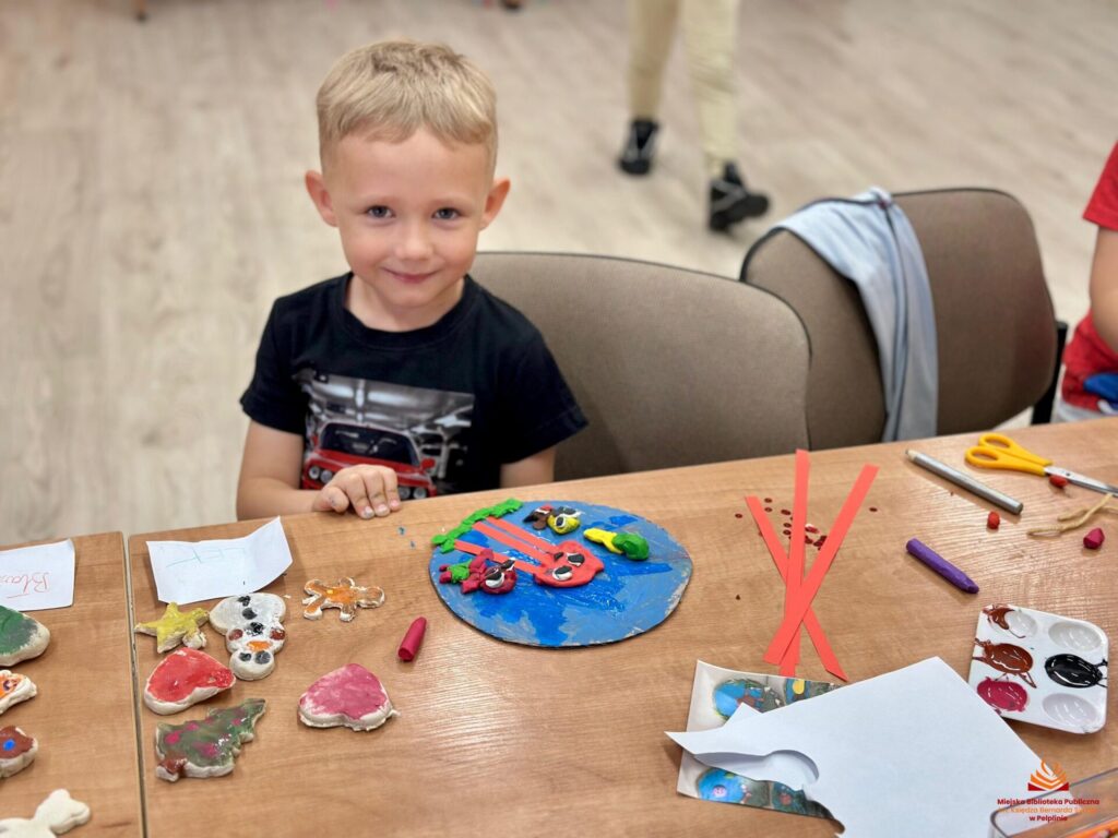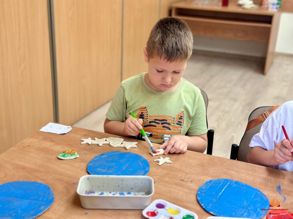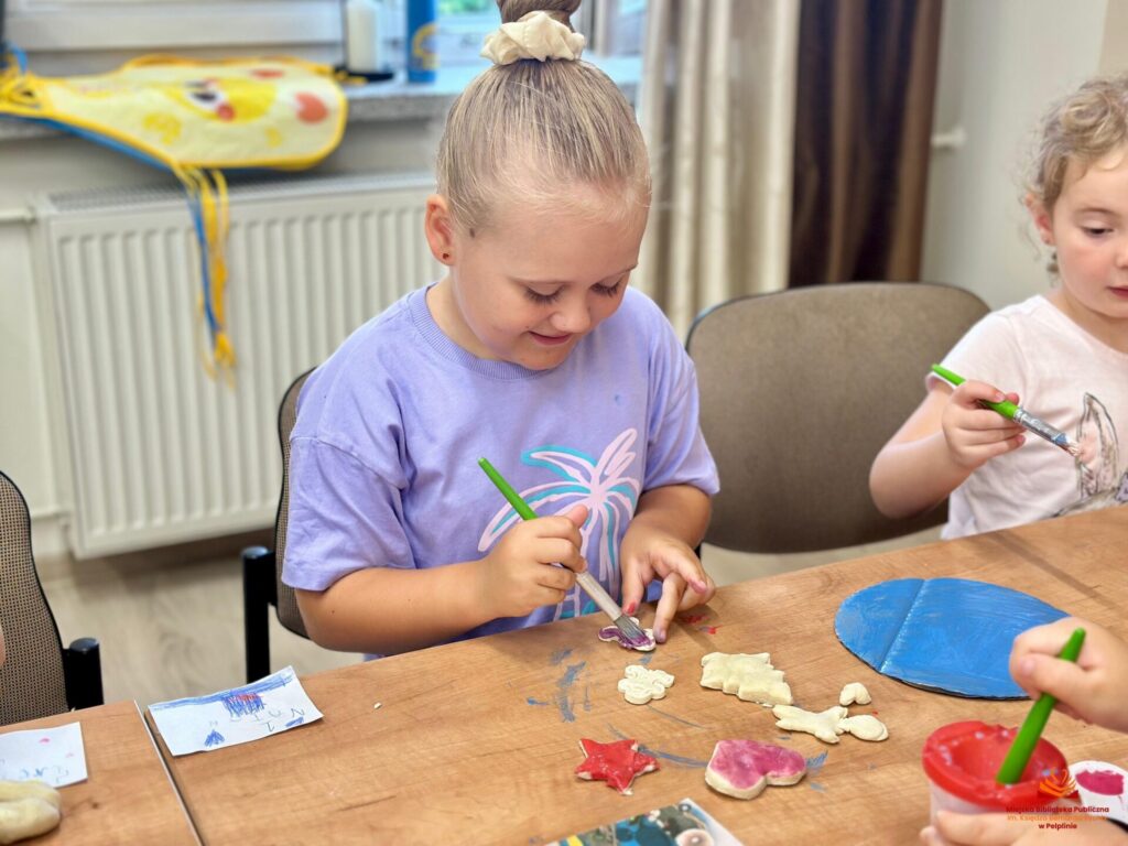 Na dzisiejszych zajęciach przenieśliśmy się do podwodnego świata! Dzieci tworzyły kolorowe oceany na kartonach – nie zabrakło ryb, meduz, ośmiornic i raf koralowych. Do dyspozycji były najróżniejsze materiały plastyczne: plastelina, druciki kreatywne, pompony, kolorowe kartki, bibuła i wiele innych ozdób, które pomogły tchnąć życie w podwodne krainy.