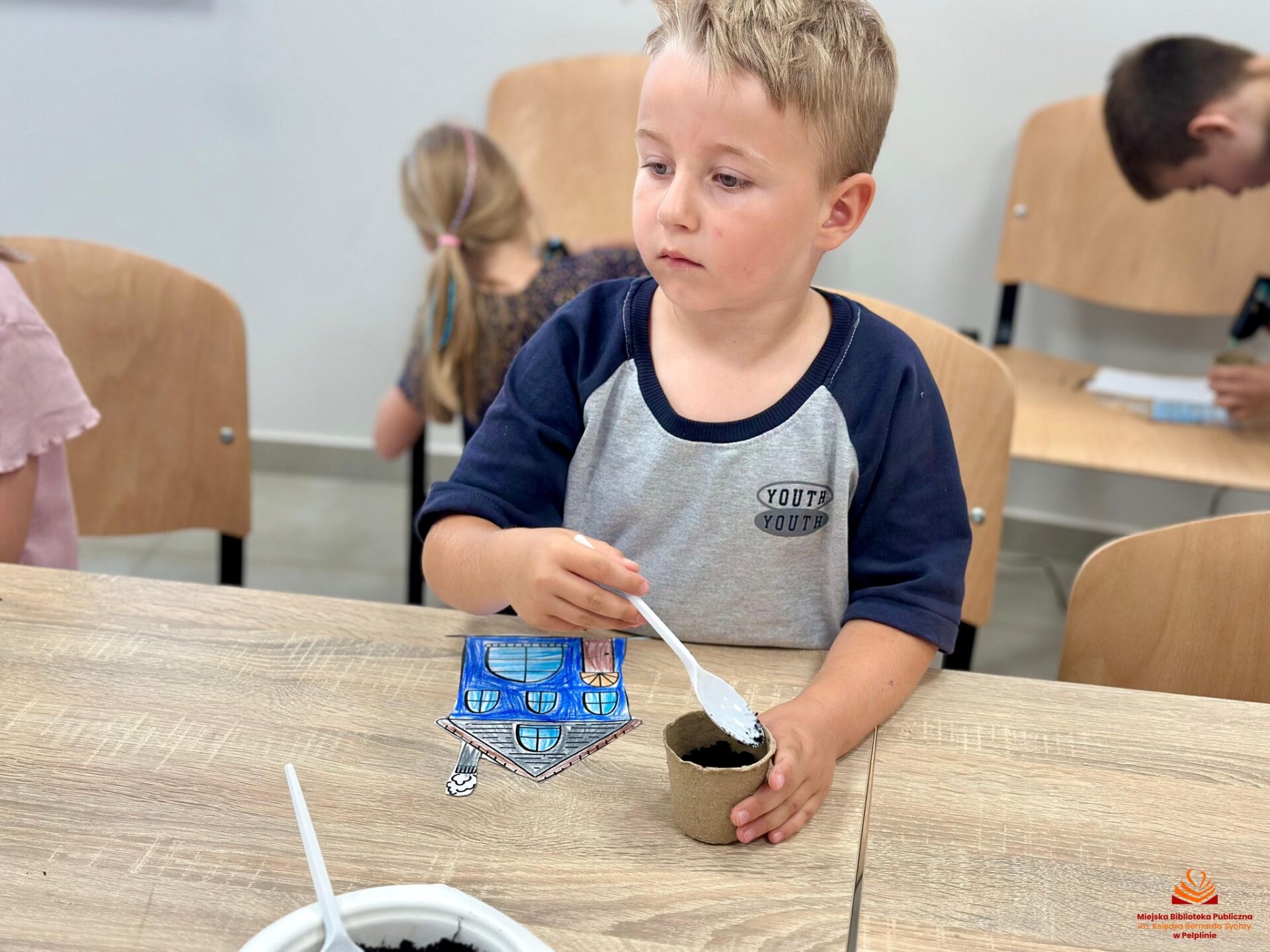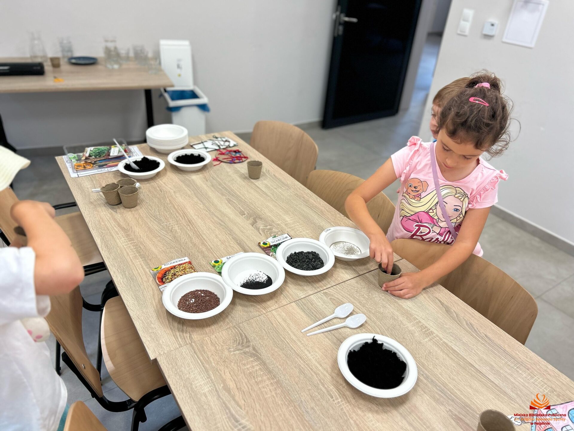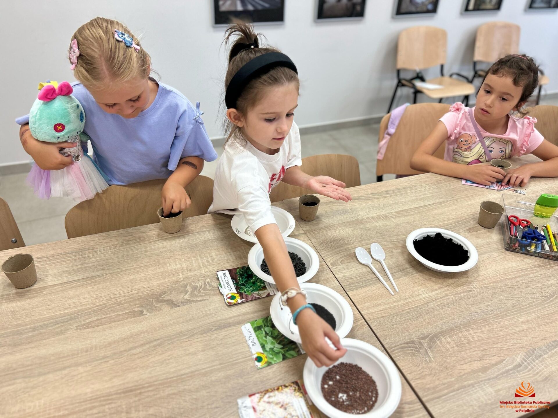 Następnie przeszliśmy do najważniejszej części spotkania – sadzenia roślin. Dzieci mogły samodzielnie wybrać, co chcą zasadzić. Do wyboru były: bazylia, słonecznik, sałata i rzodkiewka. Każde nasionko zostało starannie zasadzone w doniczce.