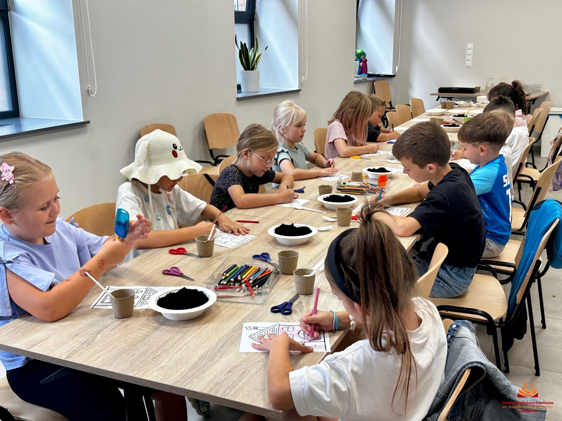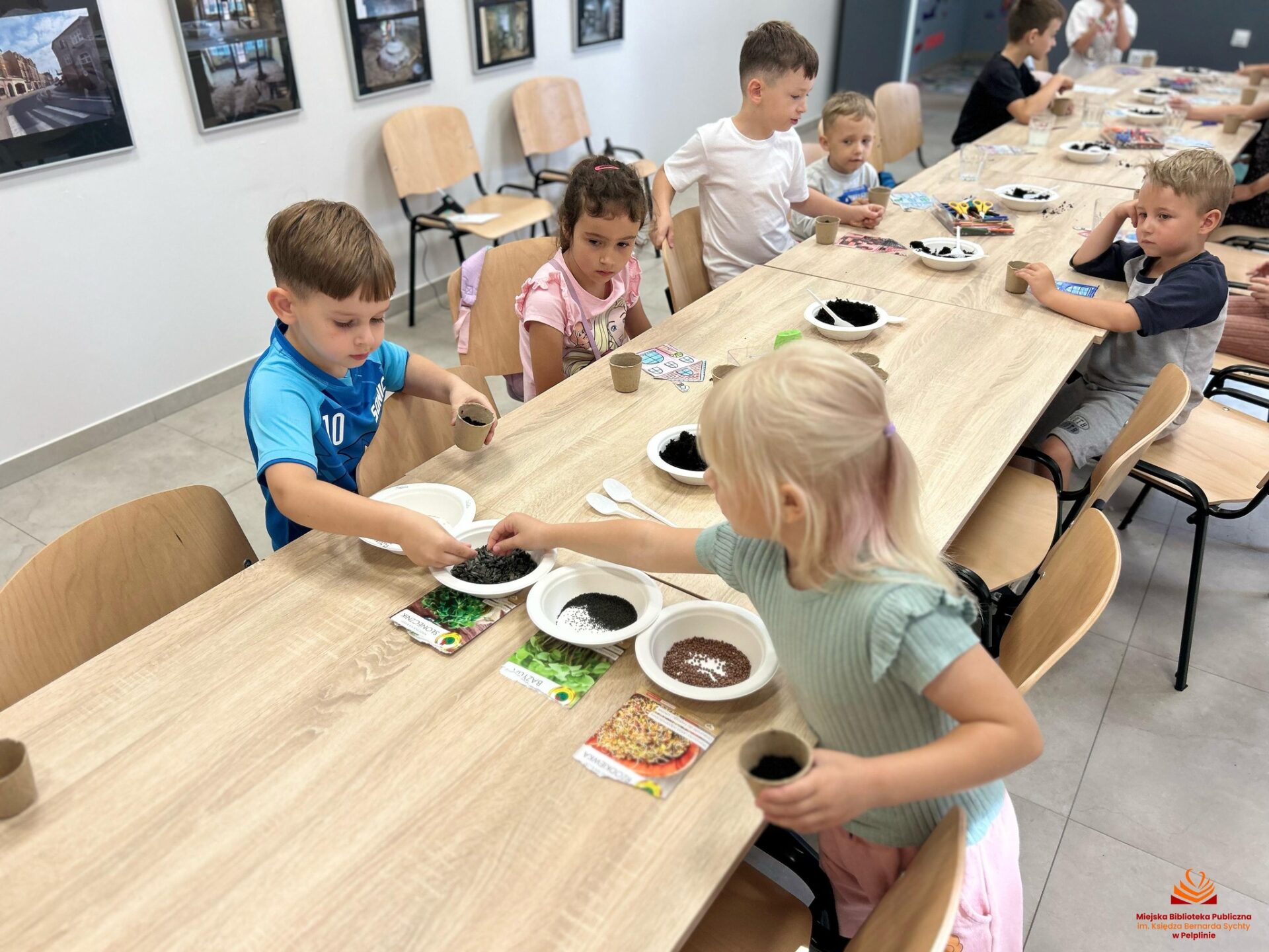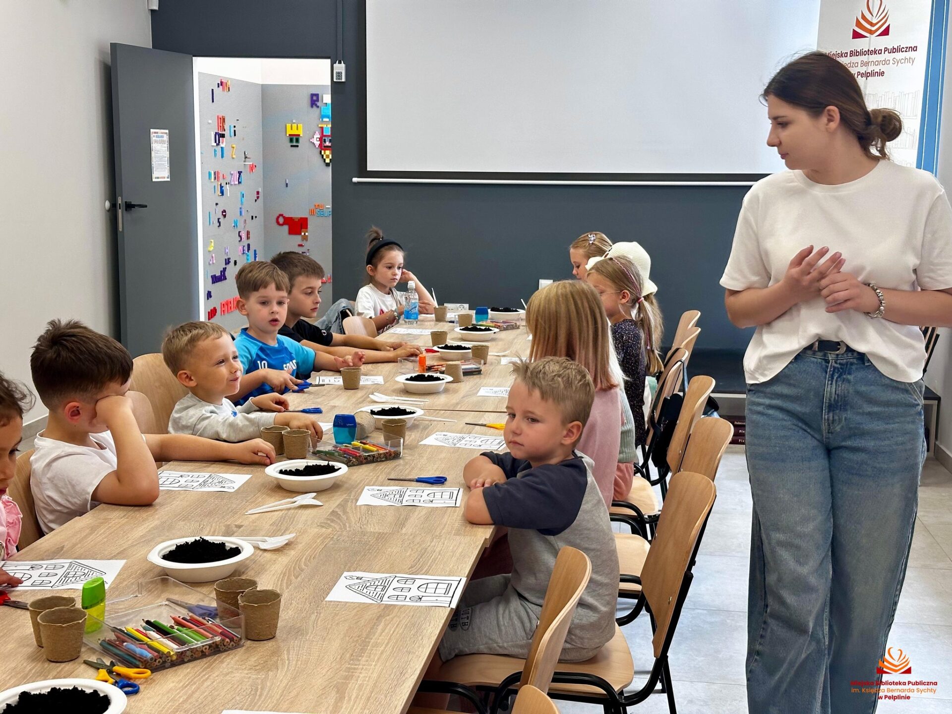 Następnie przeszliśmy do najważniejszej części spotkania – sadzenia roślin. Dzieci mogły samodzielnie wybrać, co chcą zasadzić. Do wyboru były: bazylia, słonecznik, sałata i rzodkiewka. Każde nasionko zostało starannie zasadzone w doniczce.