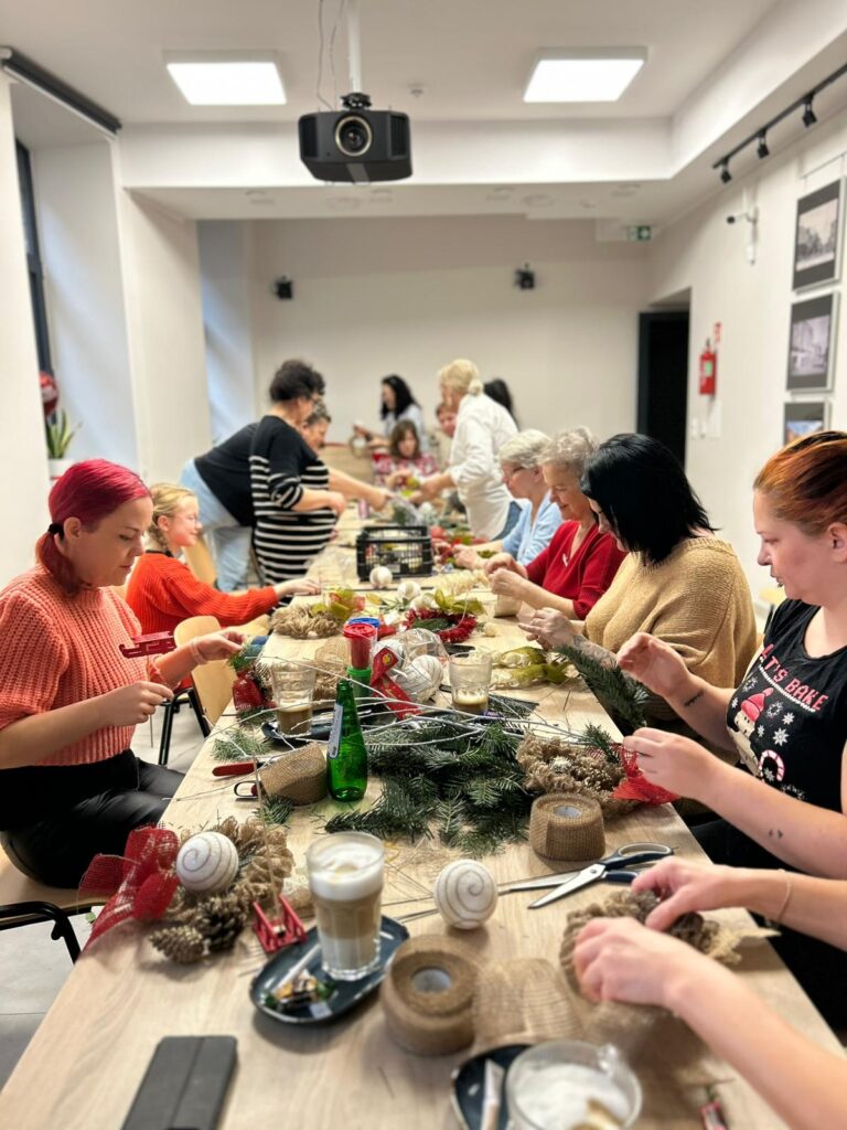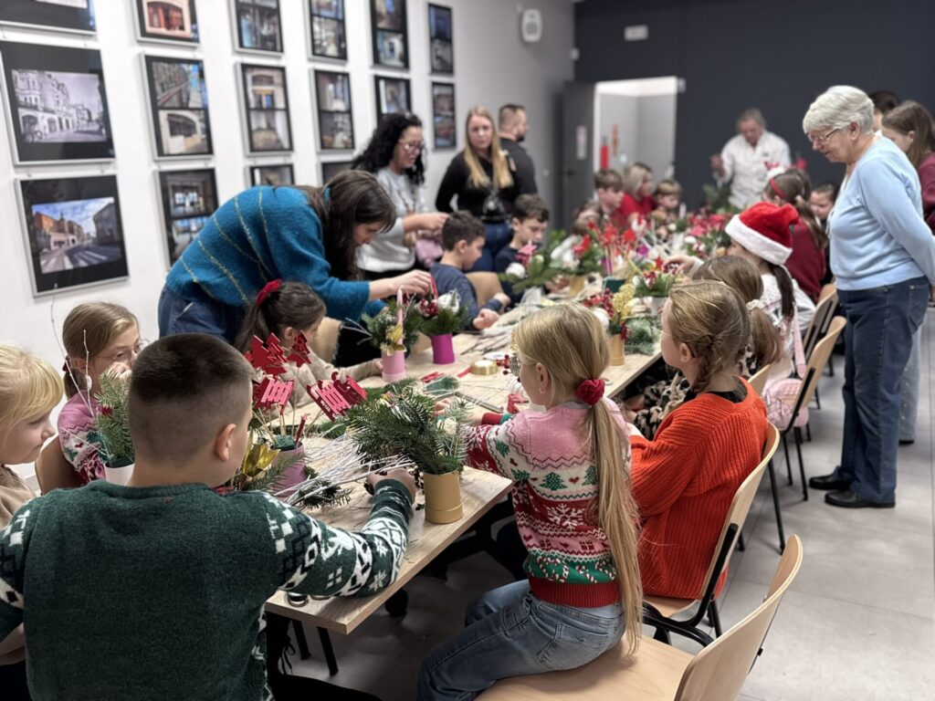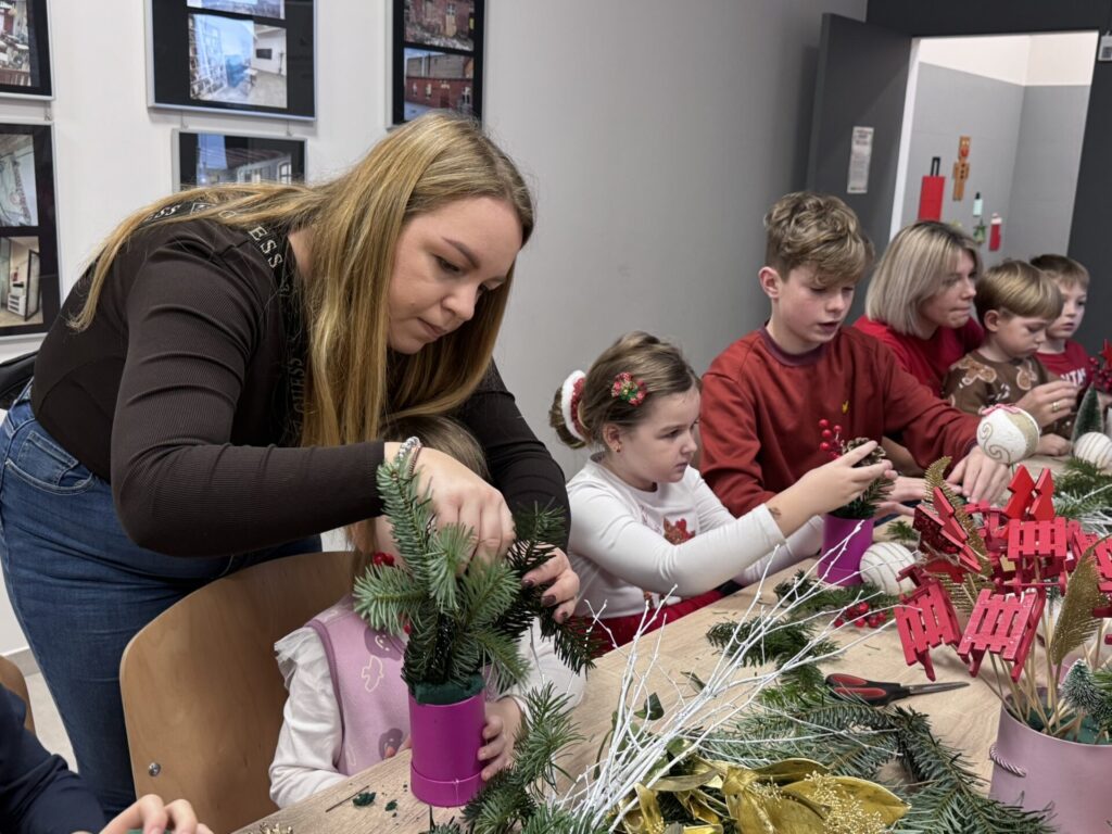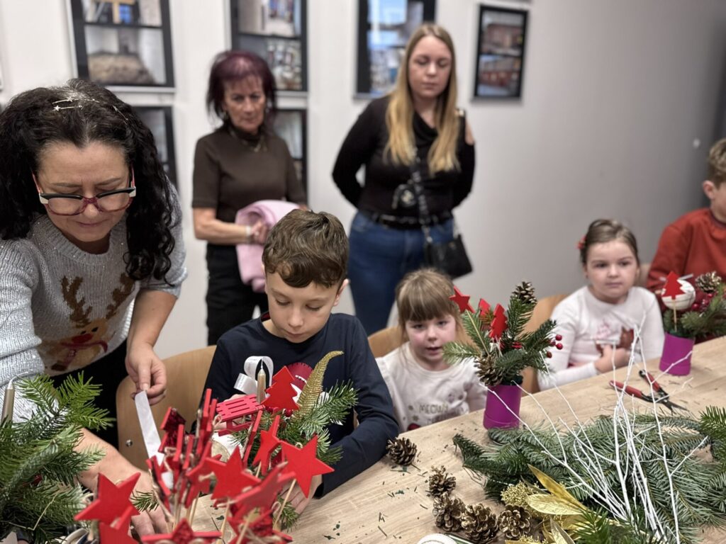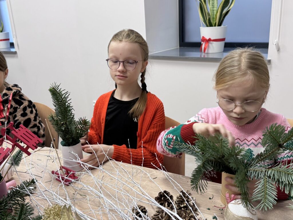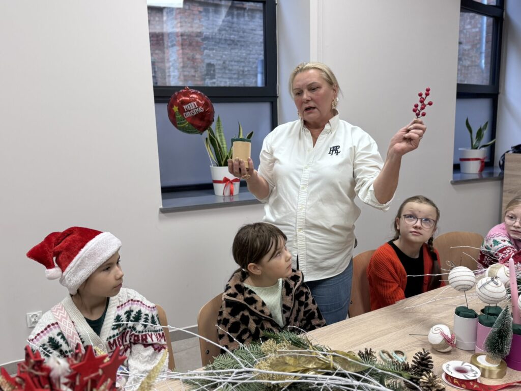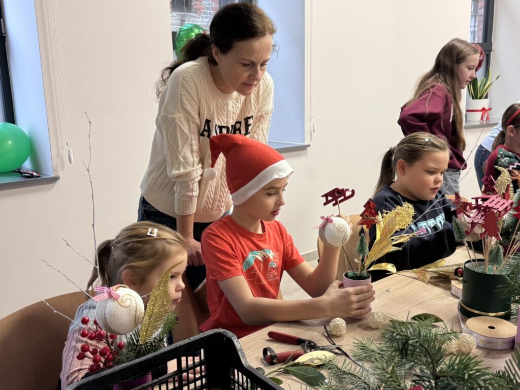 Dzisiejsze warsztaty tworzenia stroików bożonarodzeniowych zostały podzielone na dwie grupy – dzieci oraz młodzieży i dorośli.