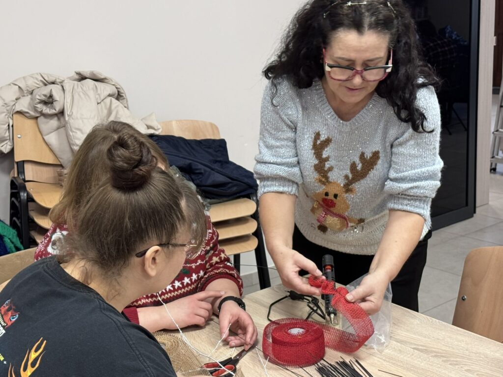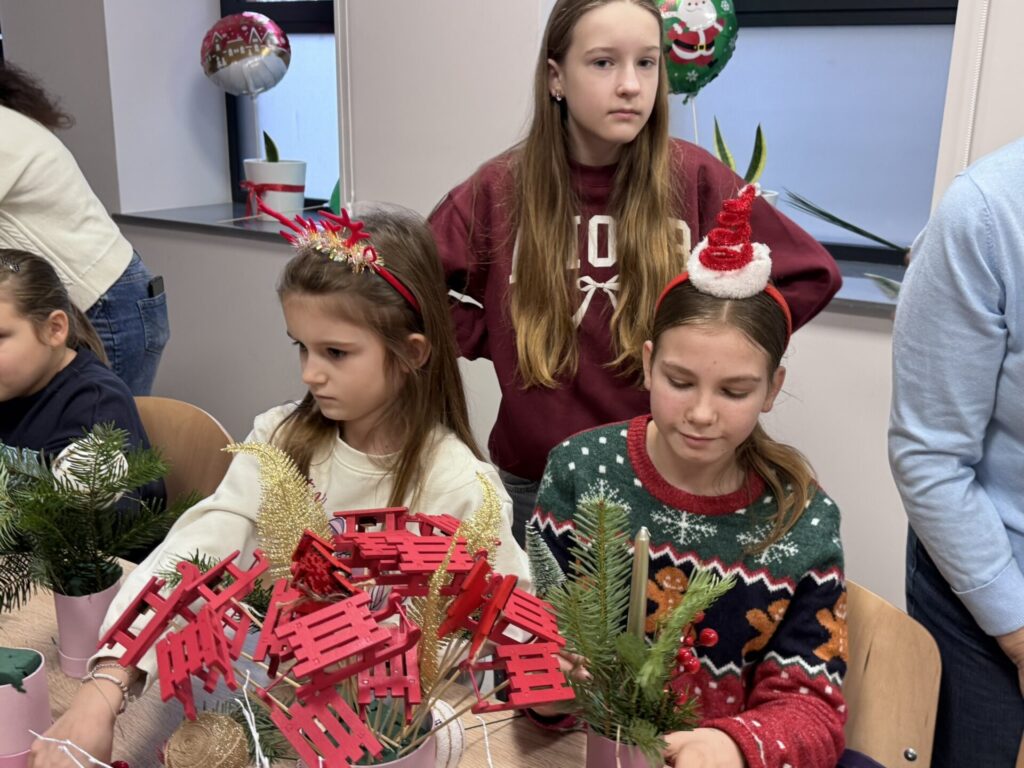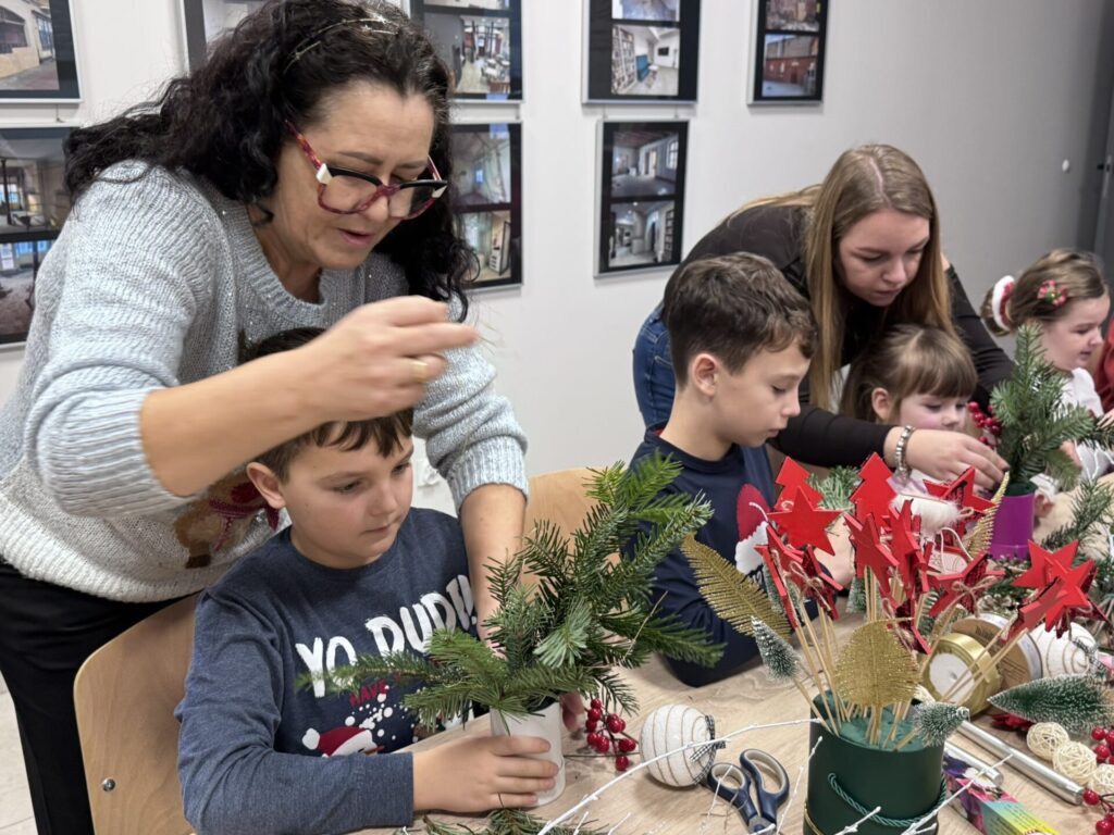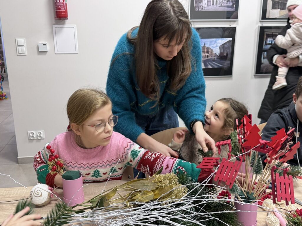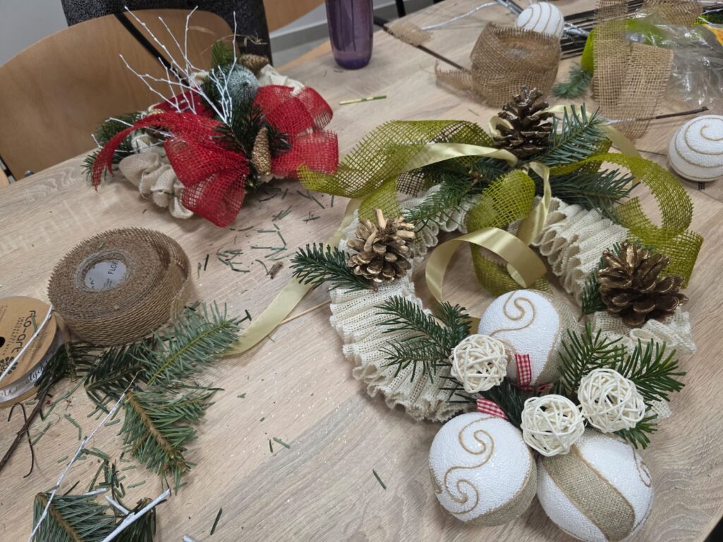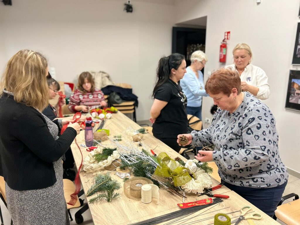 Dzisiejsze warsztaty tworzenia stroików bożonarodzeniowych zostały podzielone na dwie grupy – dzieci oraz młodzieży i dorośli.