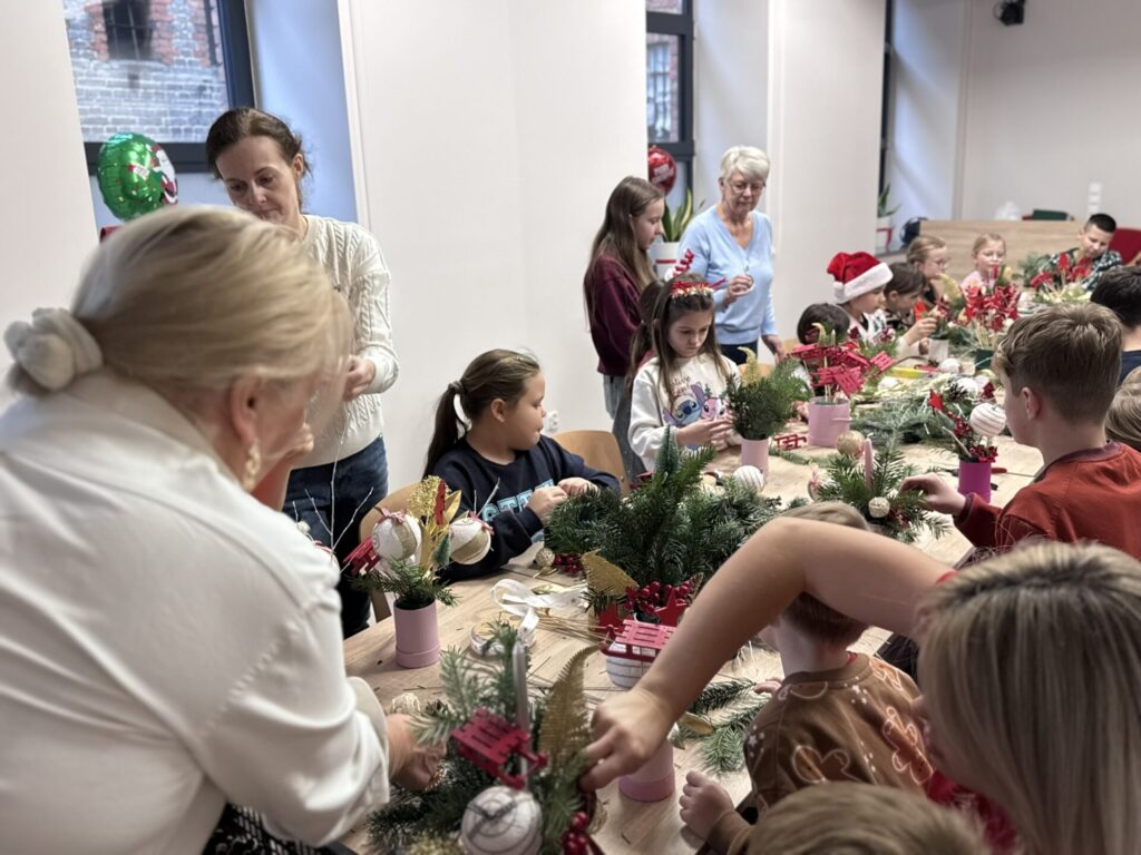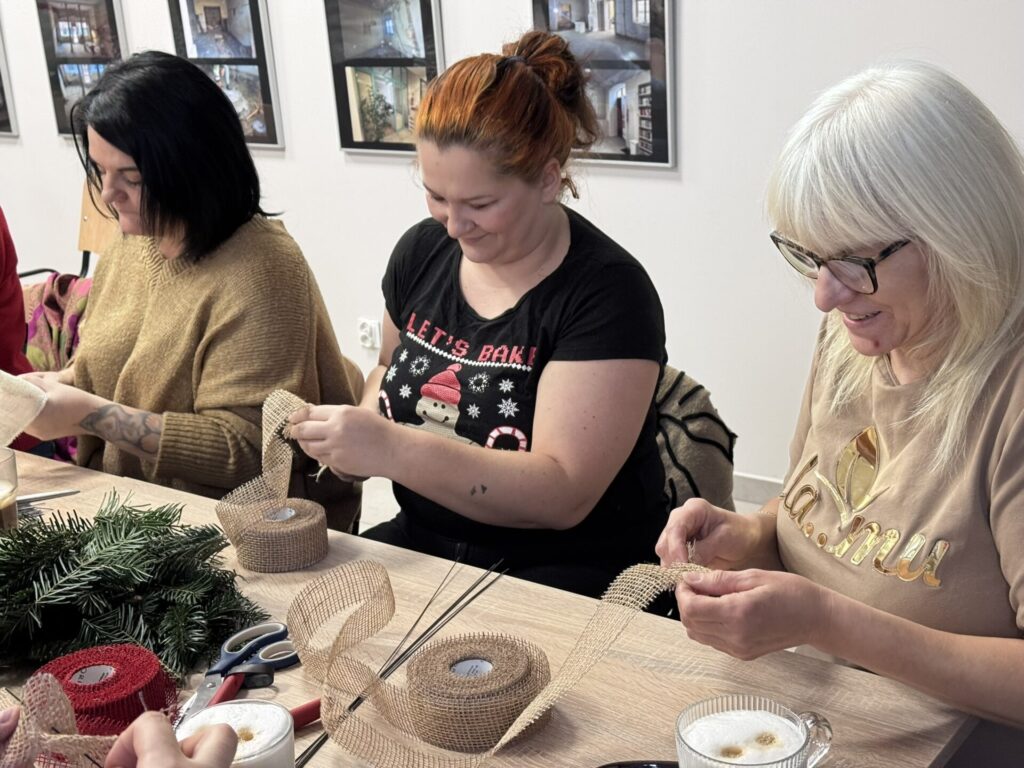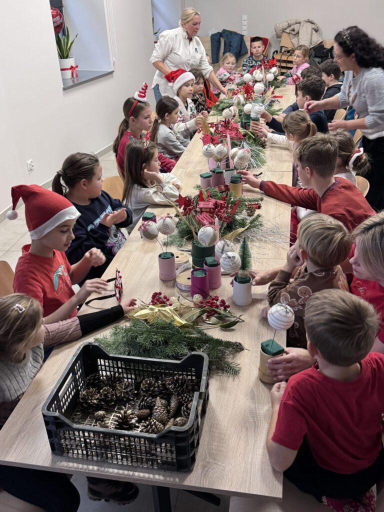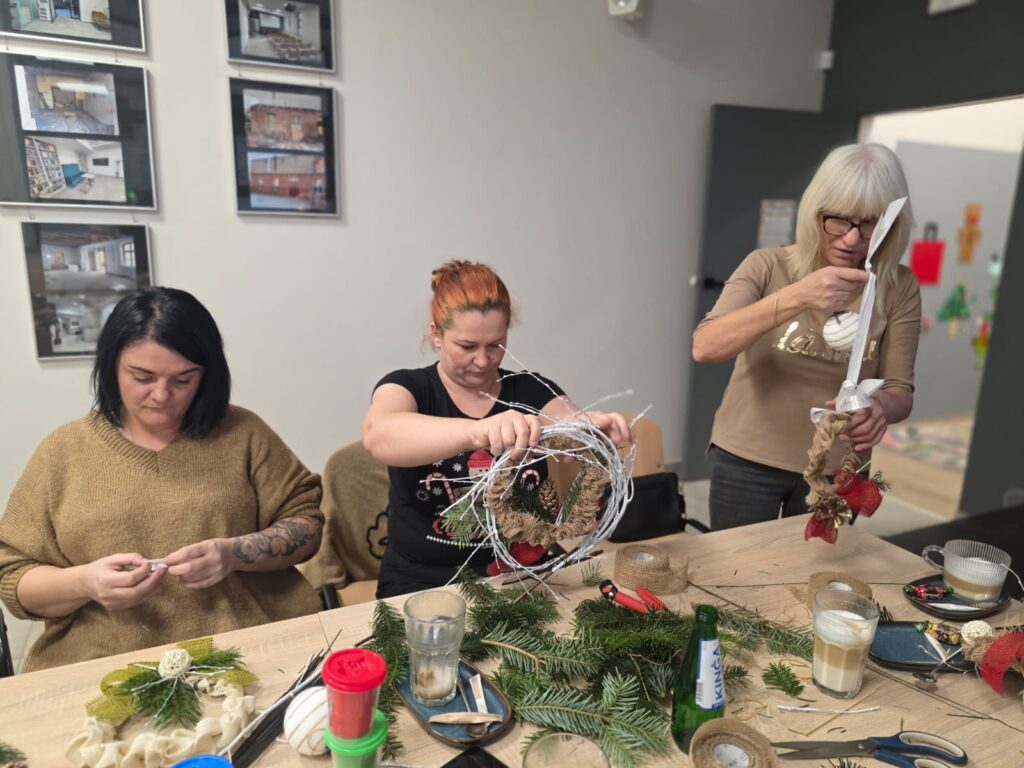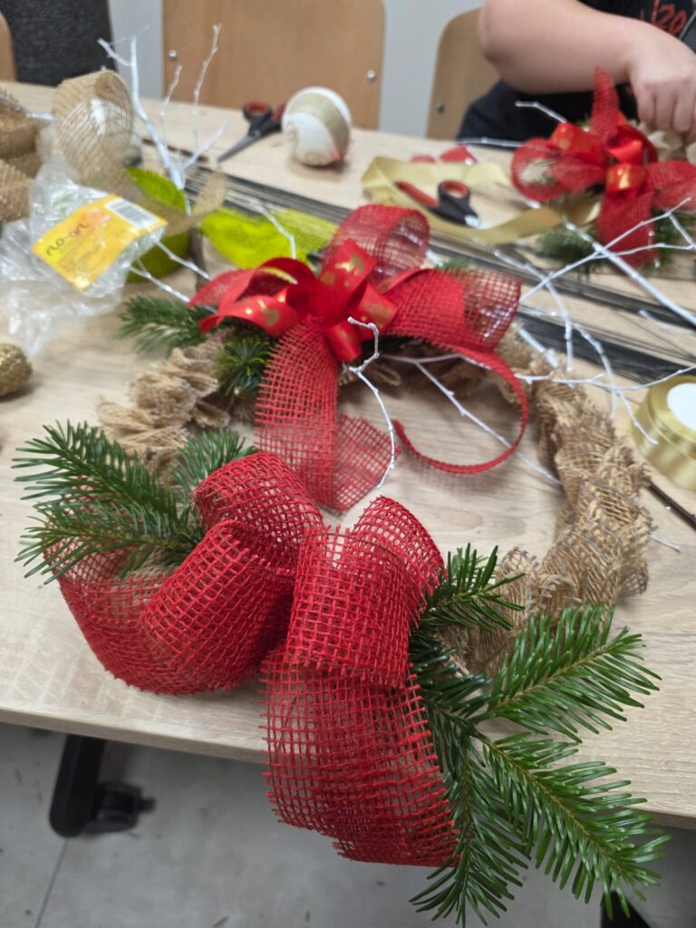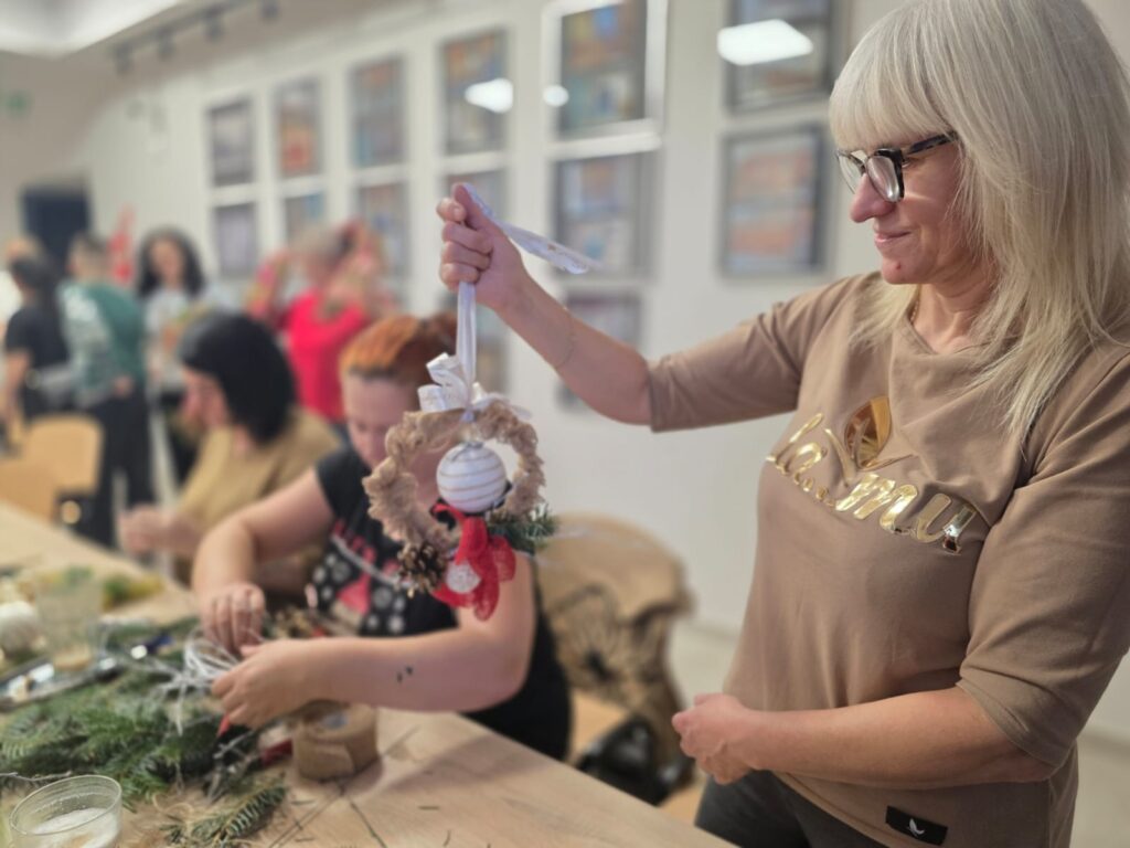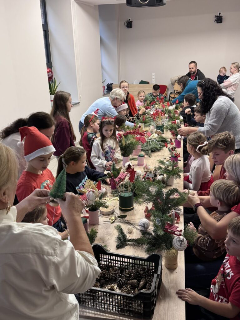 Dzisiejsze warsztaty tworzenia stroików bożonarodzeniowych zostały podzielone na dwie grupy – dzieci oraz młodzieży i dorośli.