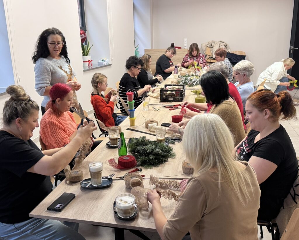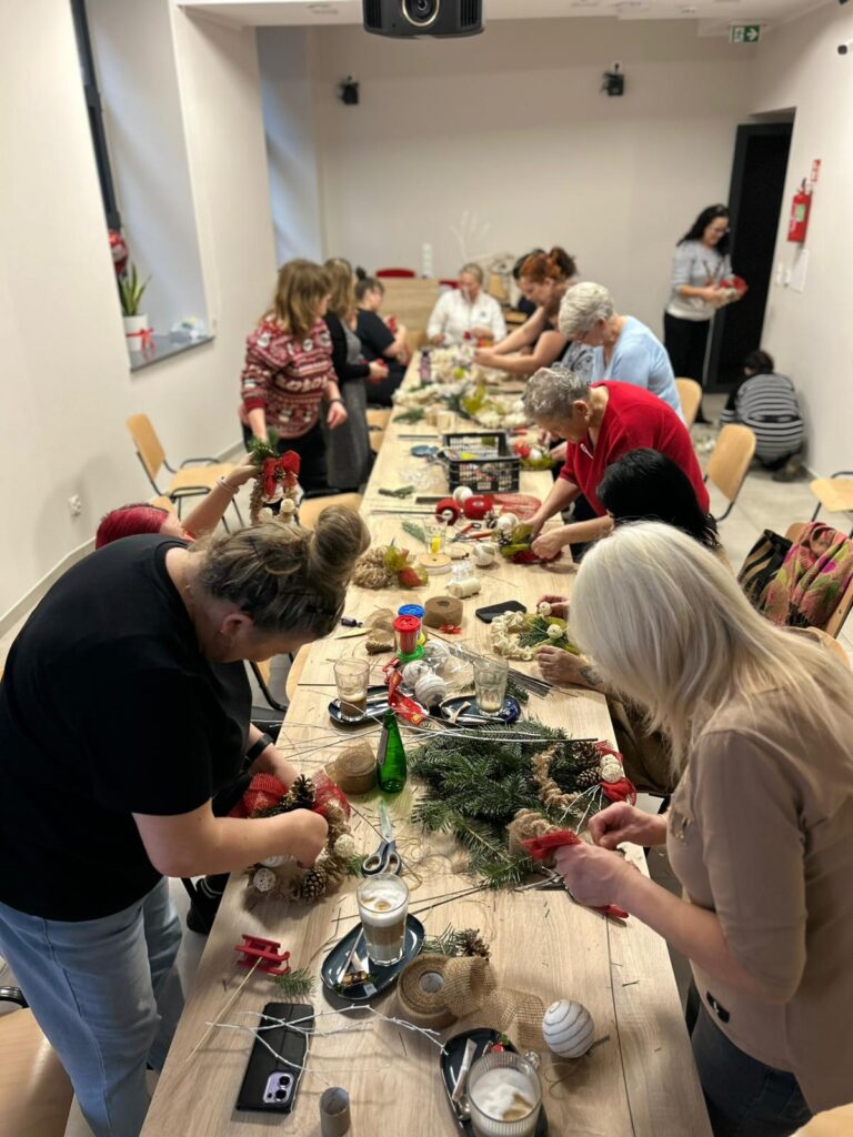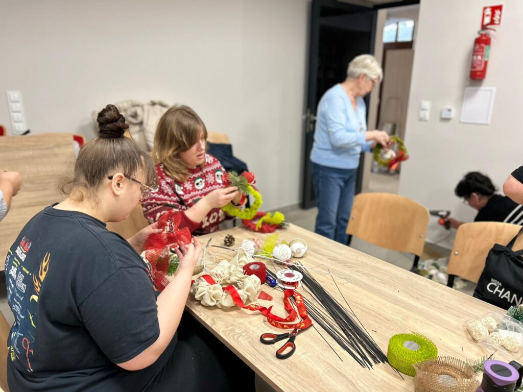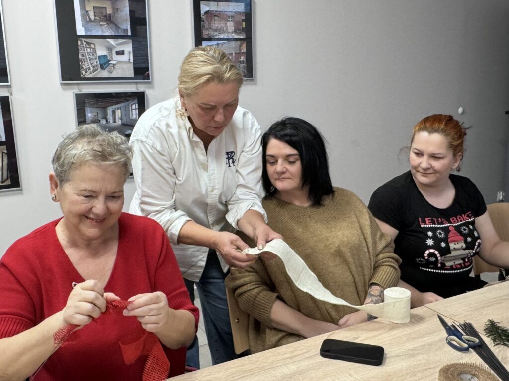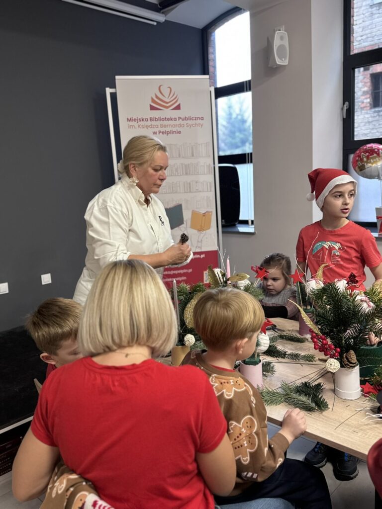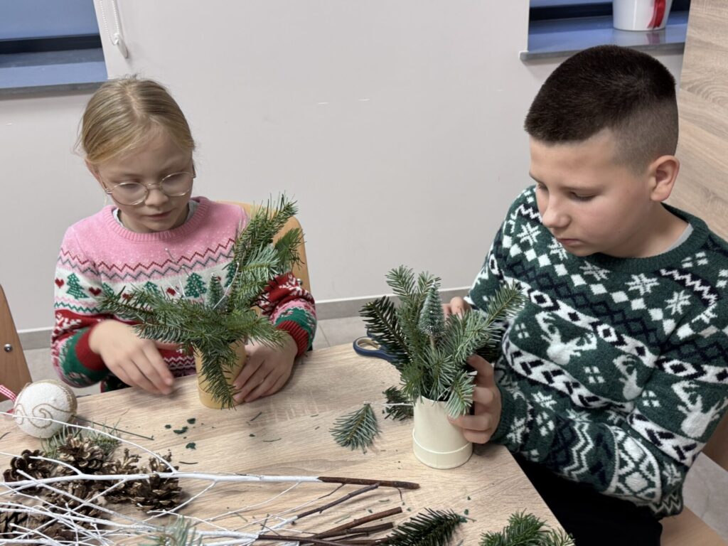 Dzisiejsze warsztaty tworzenia stroików bożonarodzeniowych zostały podzielone na dwie grupy – dzieci oraz młodzieży i dorośli.