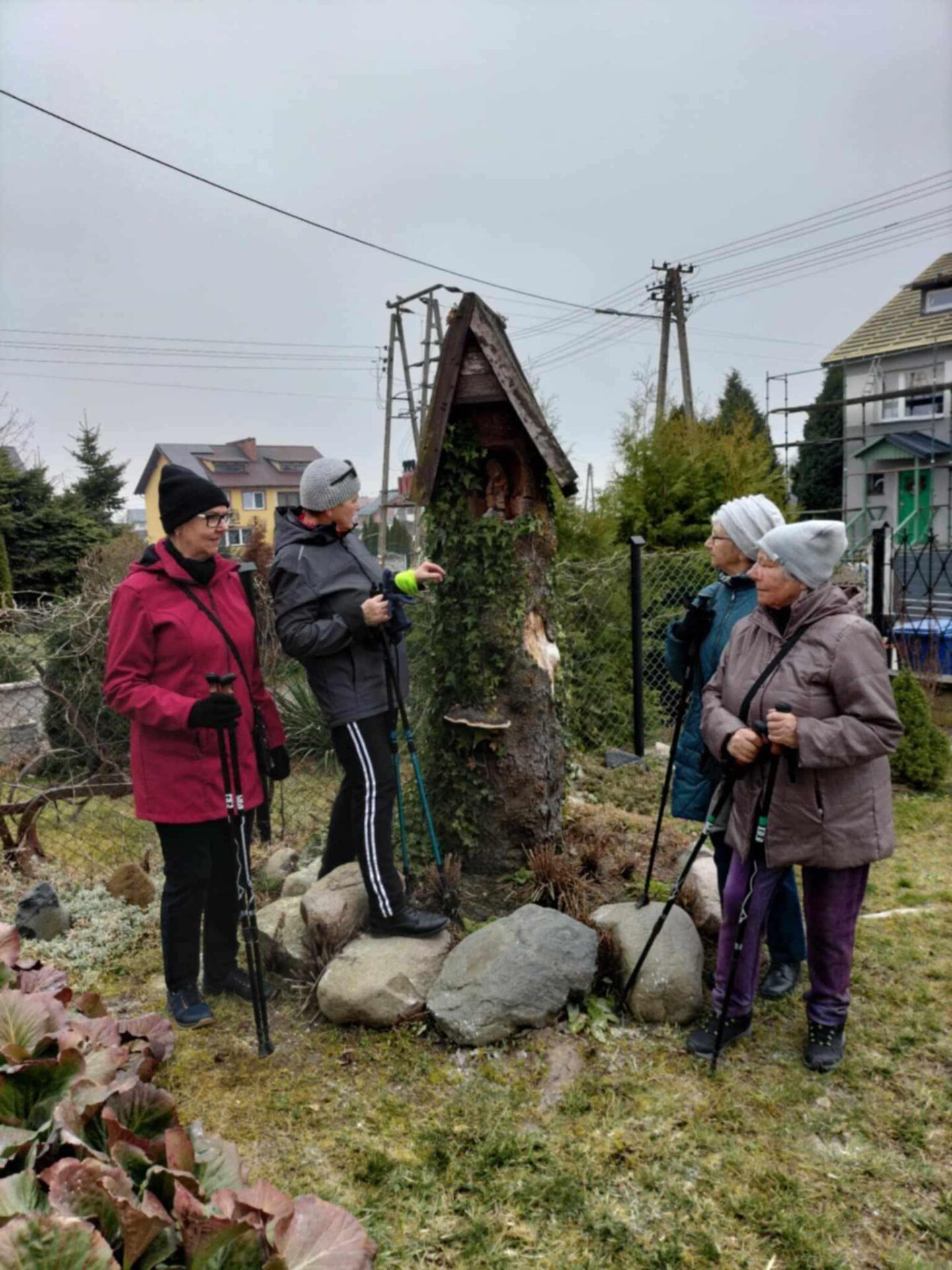 25 marca br. maszerując z kijkami szukałyśmy śladów wiosny. Słychać śpiew skowronków nad polami i widać w przydomowych ogródkach pierwsze kwiatki. Oglądałyśmy kapliczkę w ogródku koleżanki oraz nową drogę przy cmentarzu.