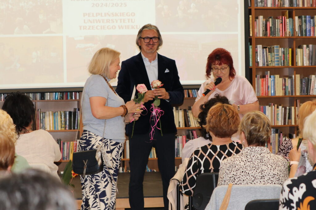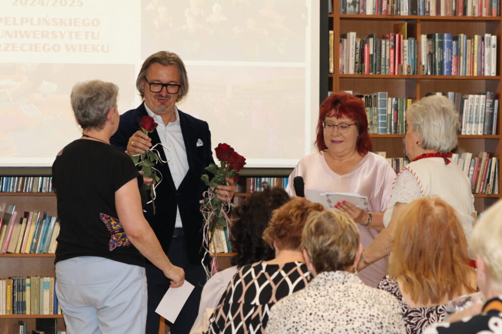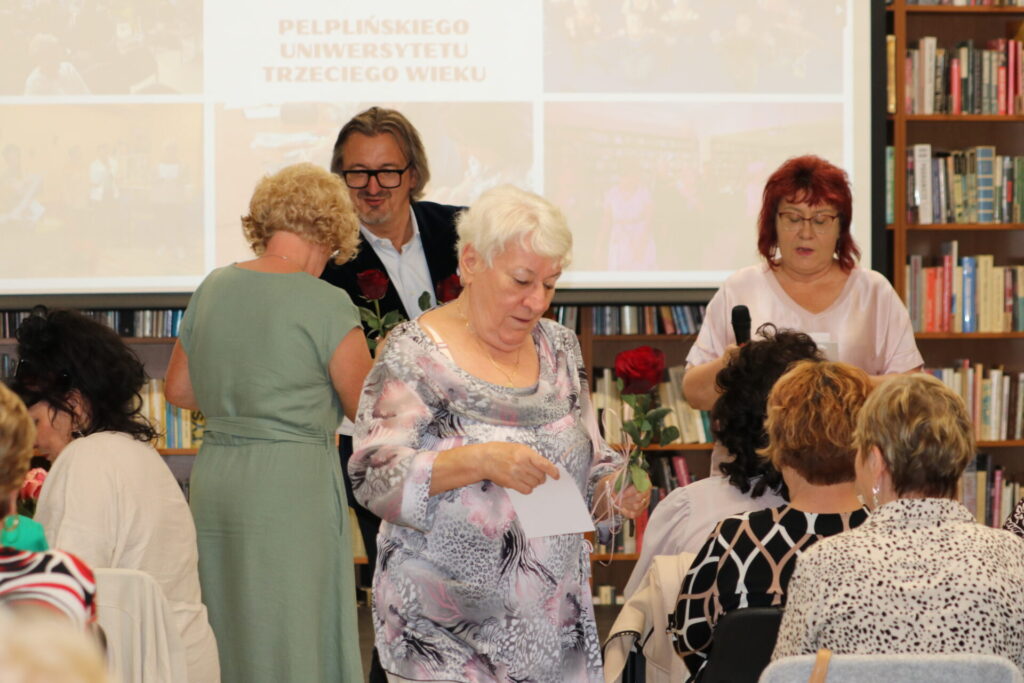 Burmistrz Miasta i Gminy Pelplin – Pan Mirosław Chyła razem z Dyrektorem Miejskiej Biblioteki Publicznej w Pelplinie – Panią Dorotą Sakowską, wręczyli Słuchaczkom i Słuchaczom dyplomy, róże oraz ciepłe słowa i serdeczne gratulacje za wytrwałość.